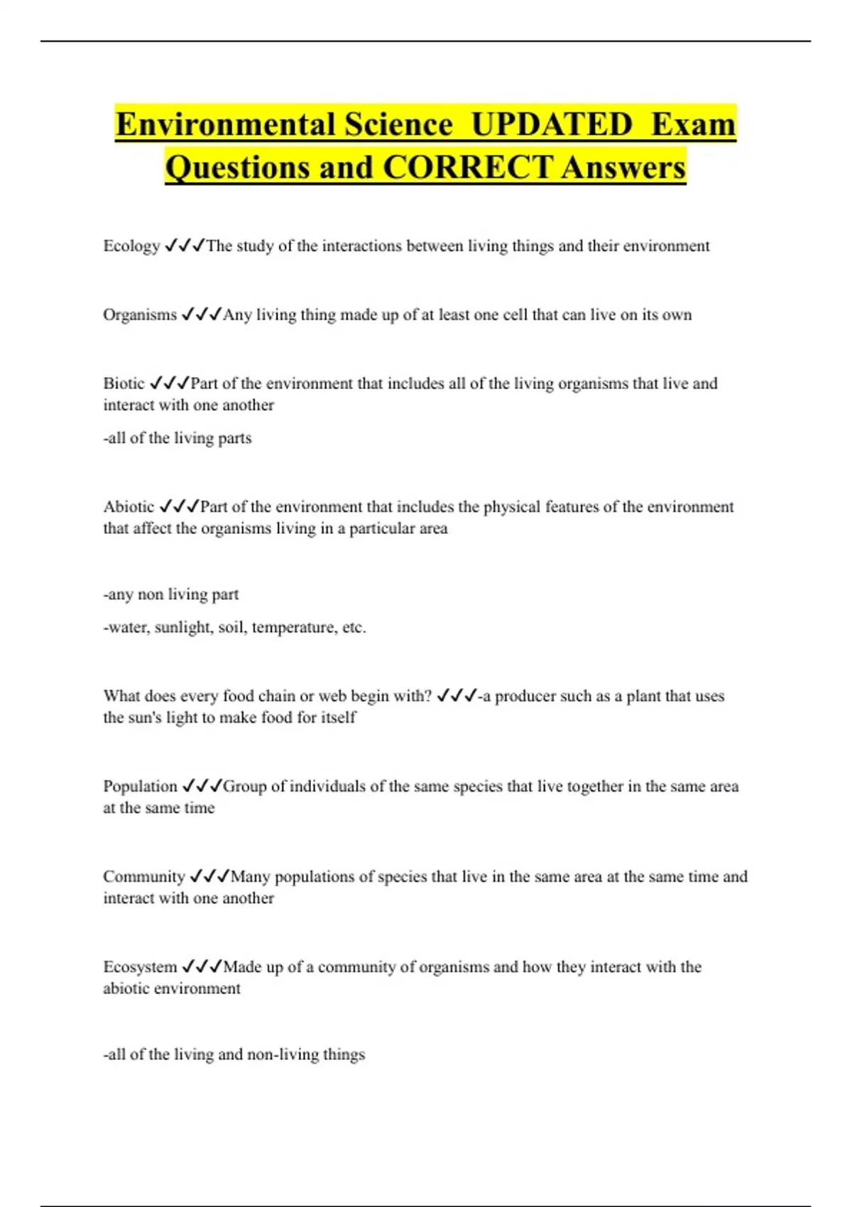Ecosystem ✔✔✔Made up of a community of organisms and how they interact with the