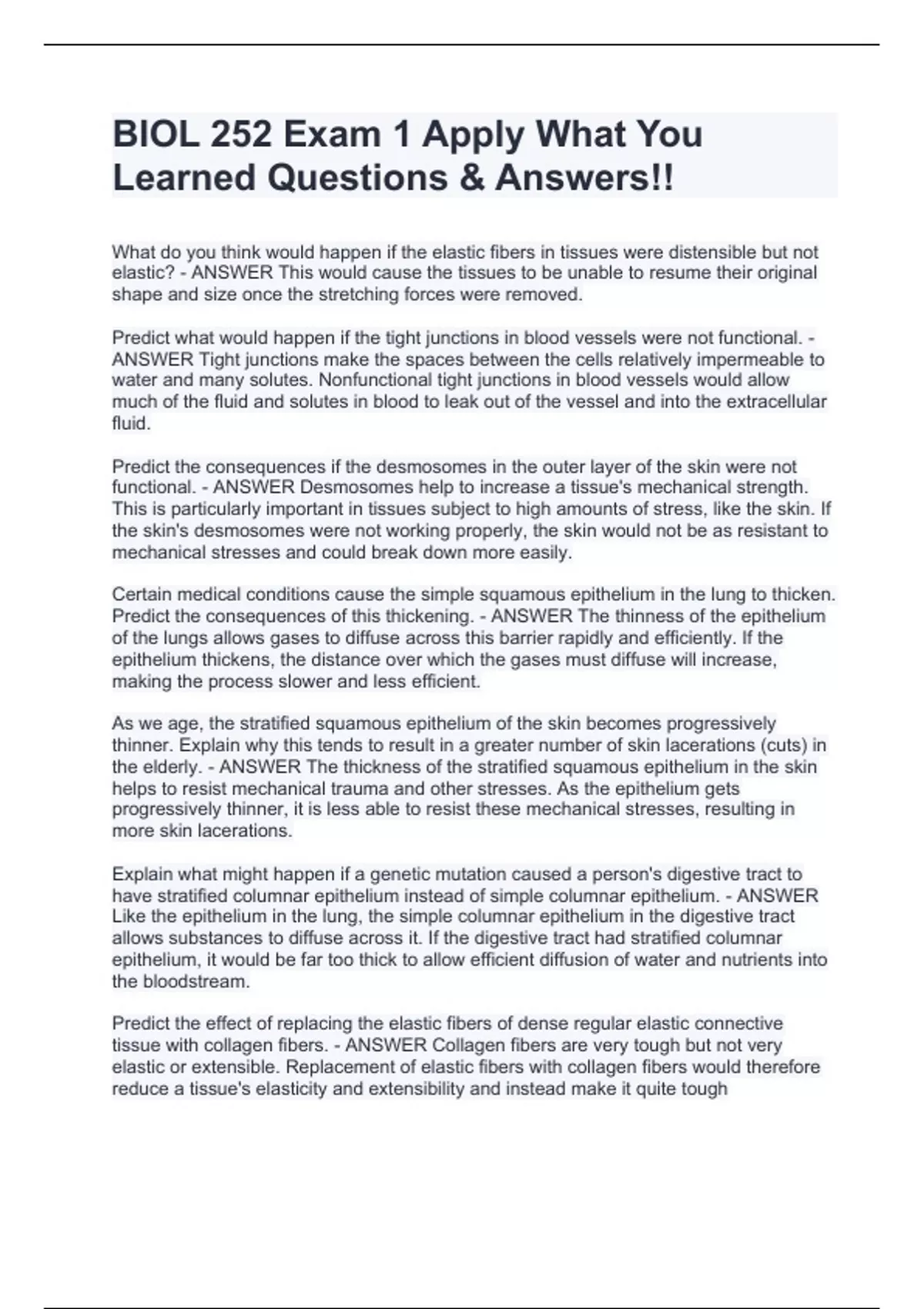 BIOL 252 Exam 1 Apply What You Learned Questions & Answers!!