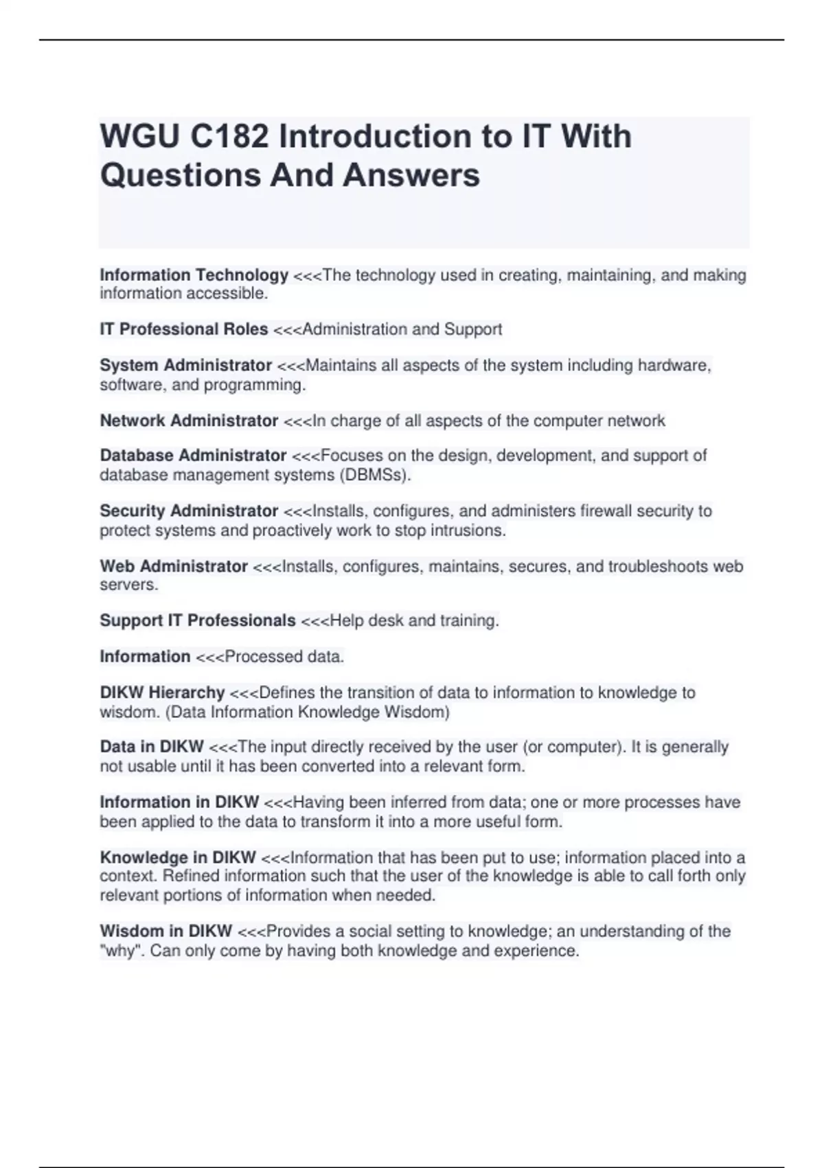 WGU C182 Introduction to IT With WGU C182 Introduction to IT With Questions And Answers Questions And Answers WGU C182 Introduction to IT With Questions And Answers