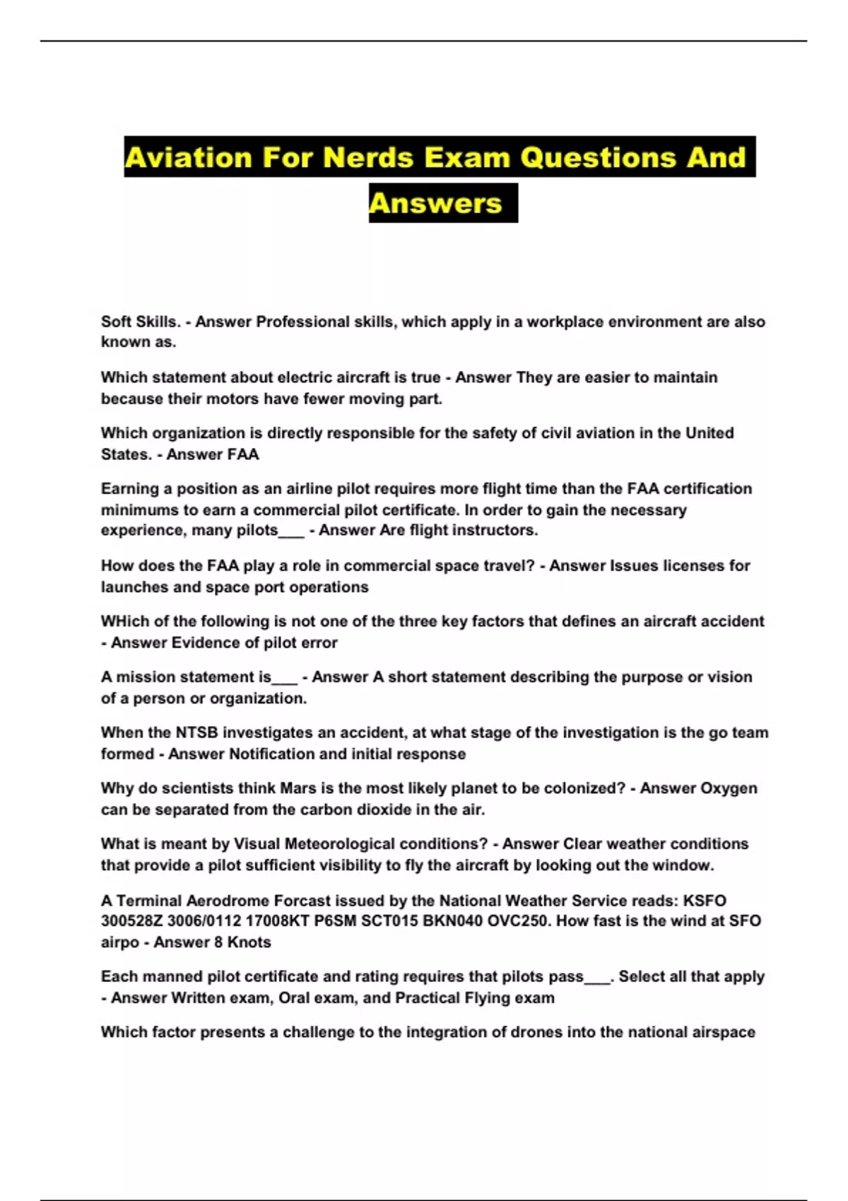 Aviation For Nerds Exam Questions And Answers...