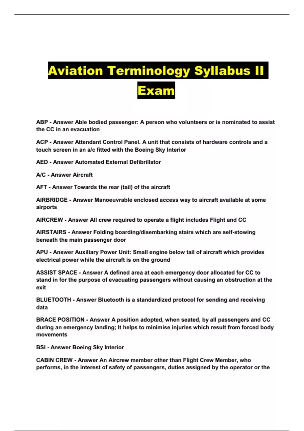 Aviation Terminology Syllabus II Exam...