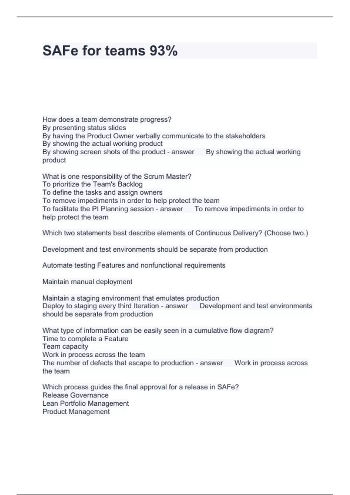 SAFe for teams 93%, Questions with correct Answers