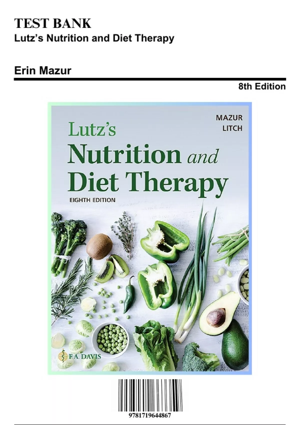 Test Bank for Lutz’s Nutrition and Diet Therapy, 8th Edition by Mazur Litch, , Covering Chapters 1-24 | Includes Rationales