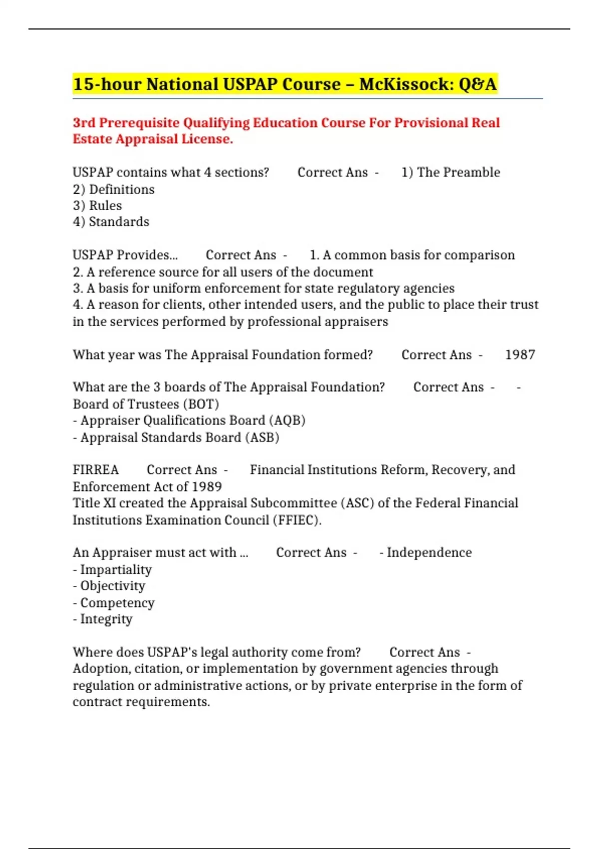 15-hour National USPAP Course – McKissock: Q&A