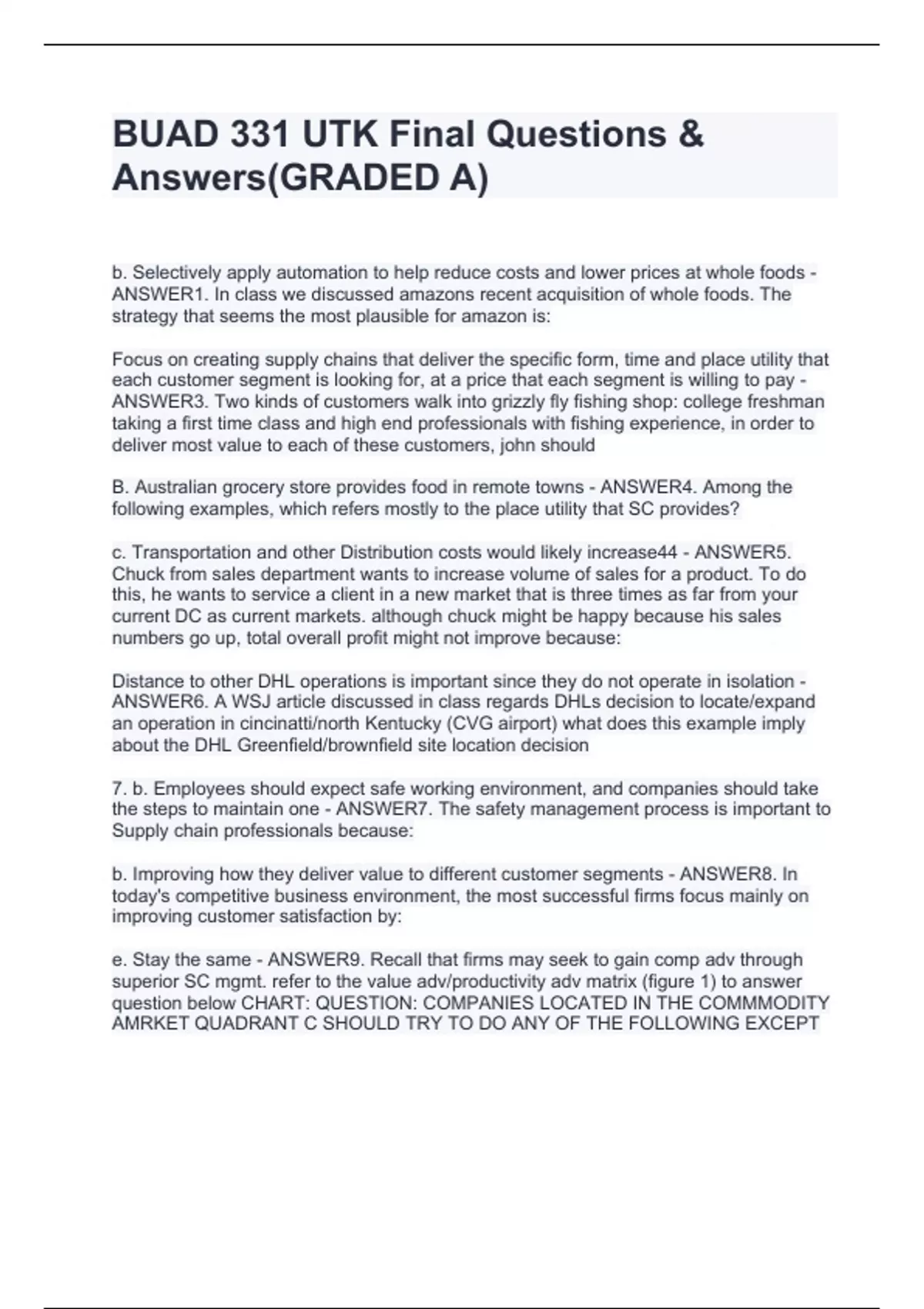 BUAD 331 UTK Final Questions & Answers(GRADED A)