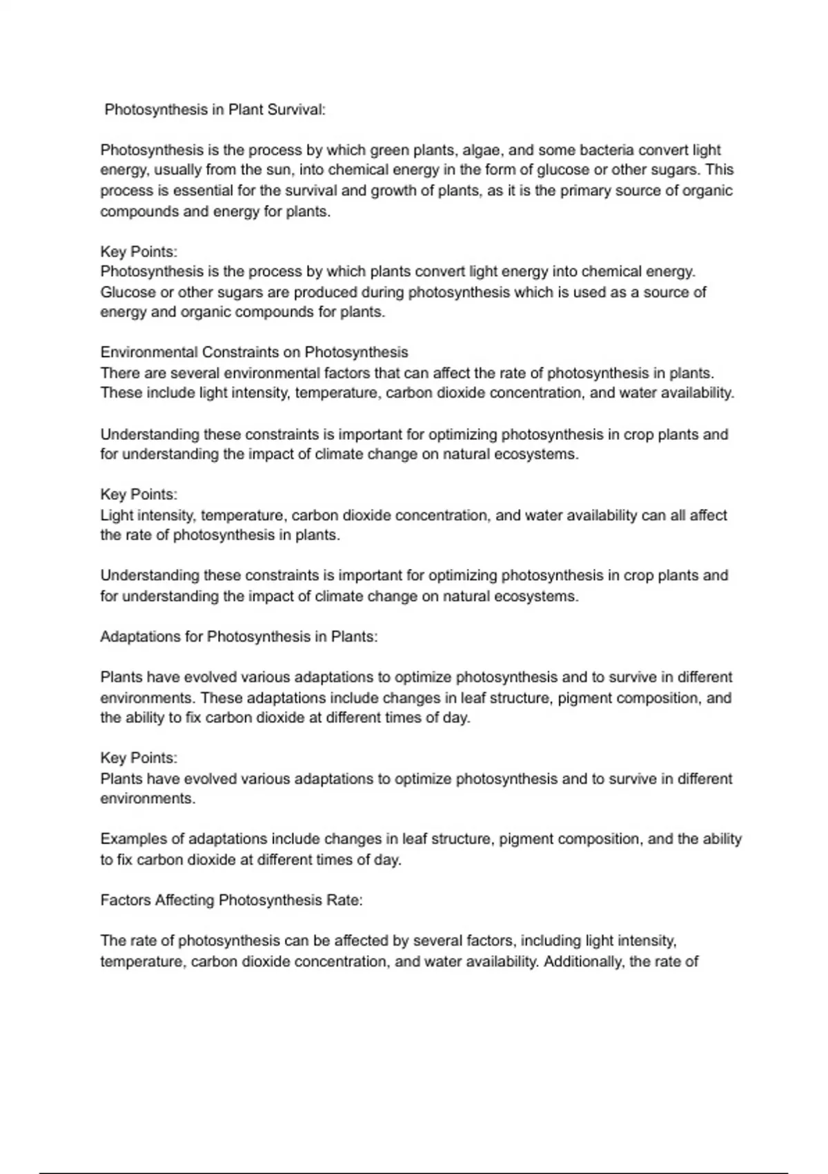 Plants have evolved various adaptations to optimize photosynthesis and to survive in different
