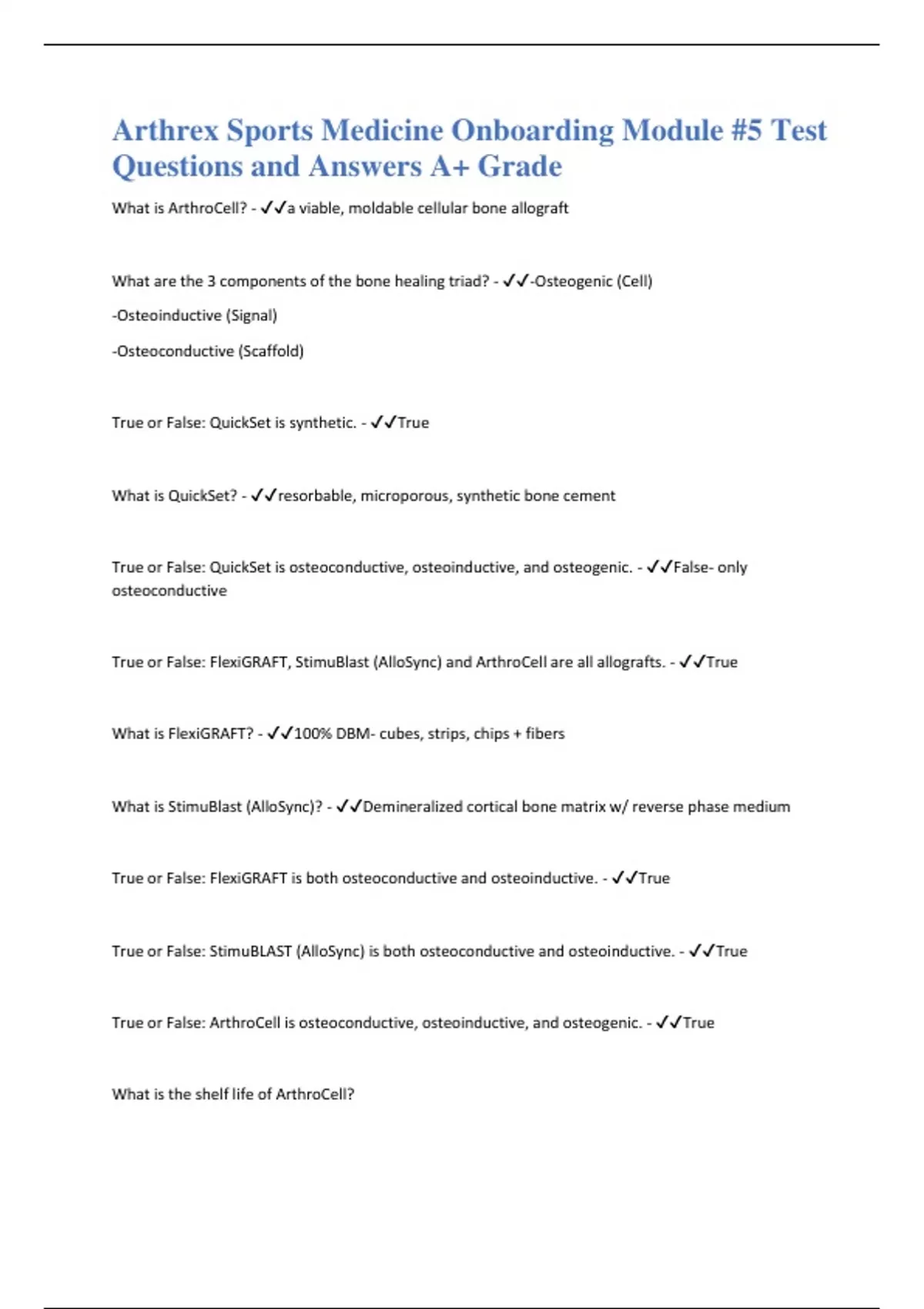 Arthrex Sports Medicine Onboarding Module #5 Test Questions and Answers A+ Grade