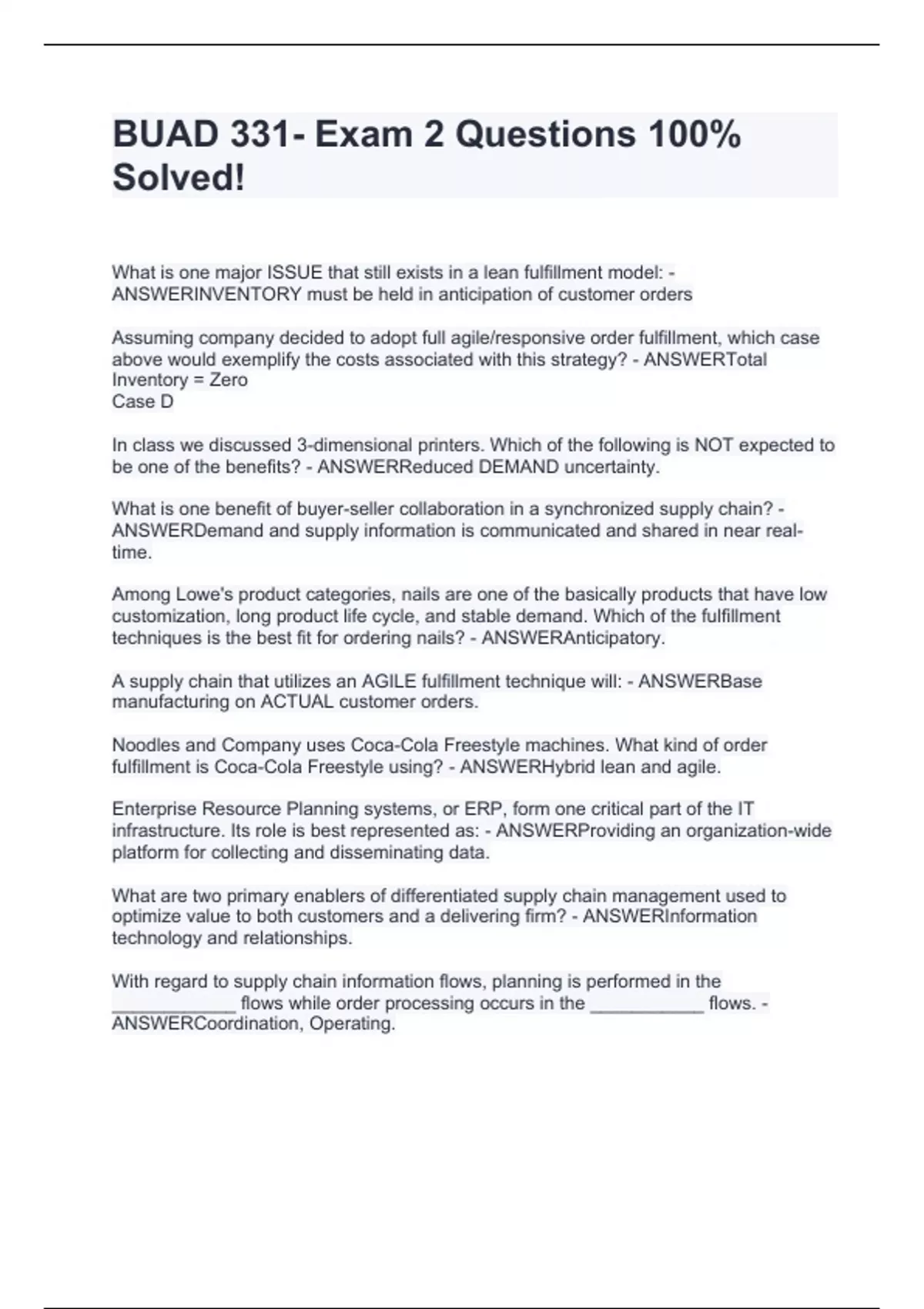 buad 331 exam 2 questions 100 solved