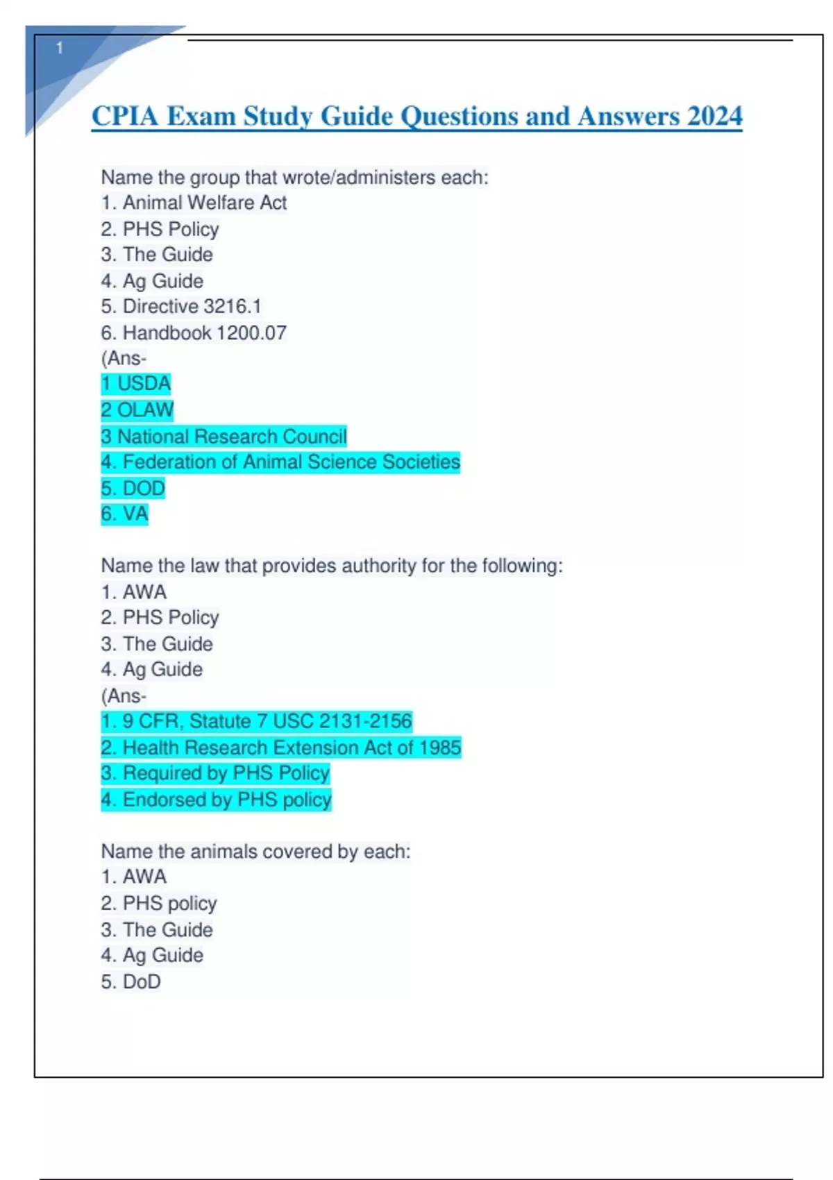 CPIA Exam Study Guide Questions and Answers 2024.