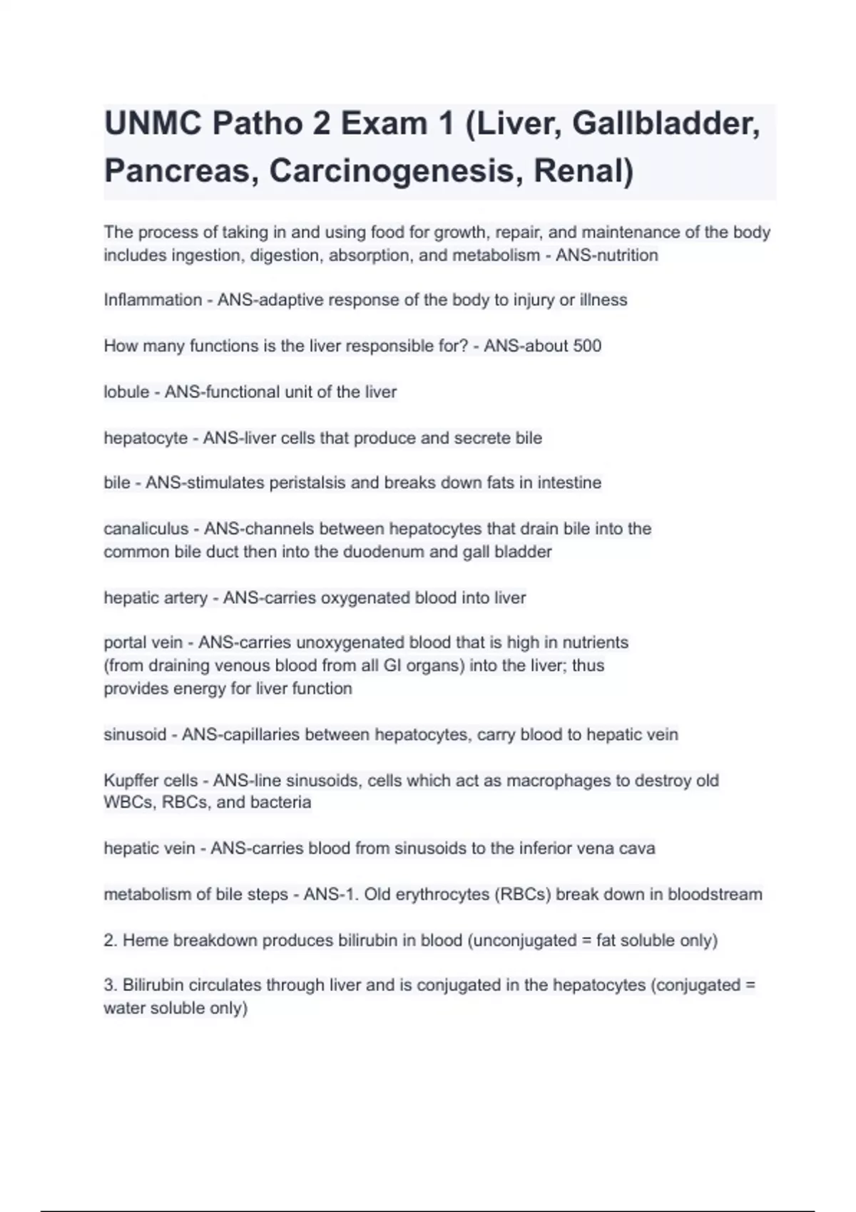 unmc patho 2 exam 1 liver gallbladder pancreas