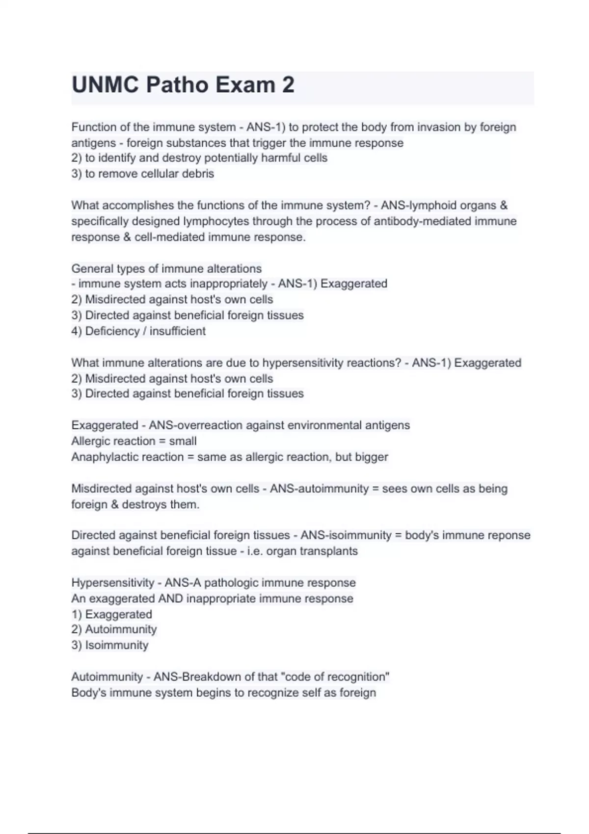 unmc patho exam 2 with 100 correct answers
