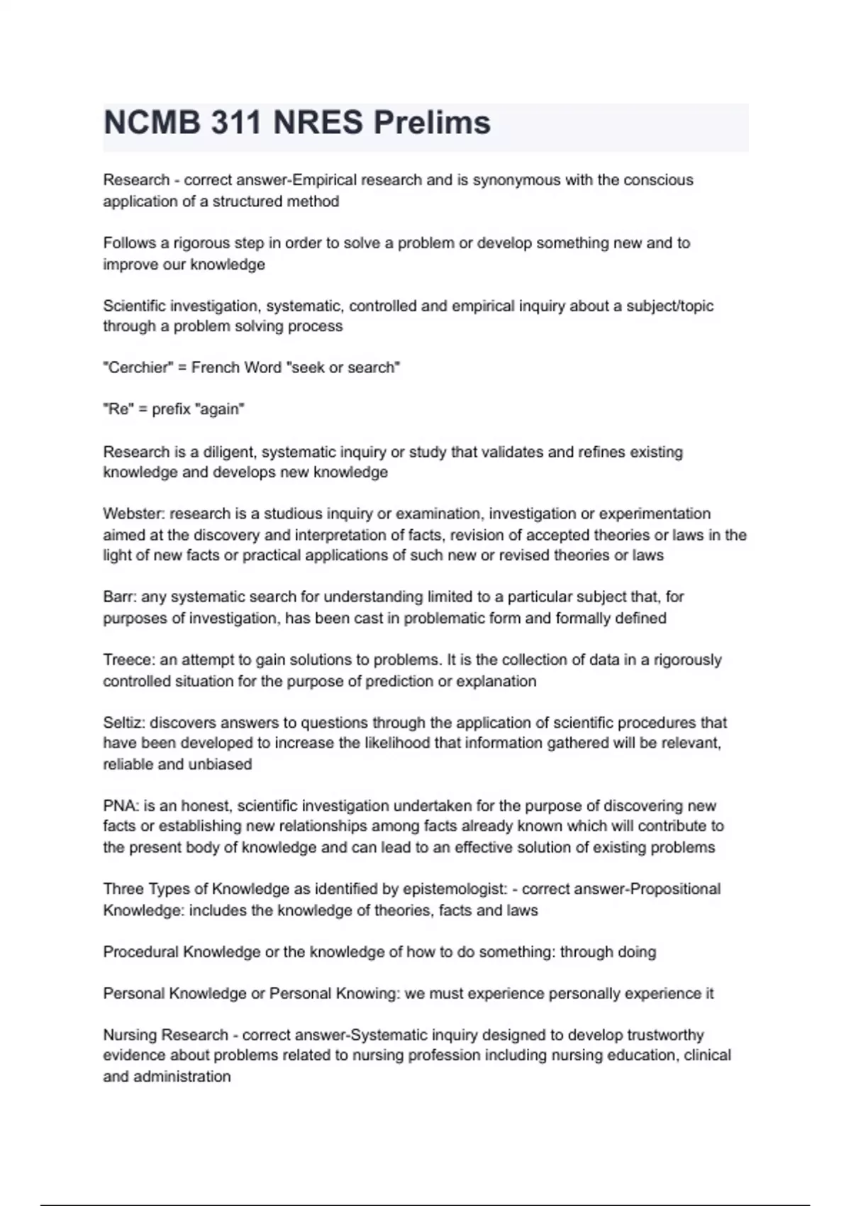 NCMB 311 NRES Prelims with correct answers