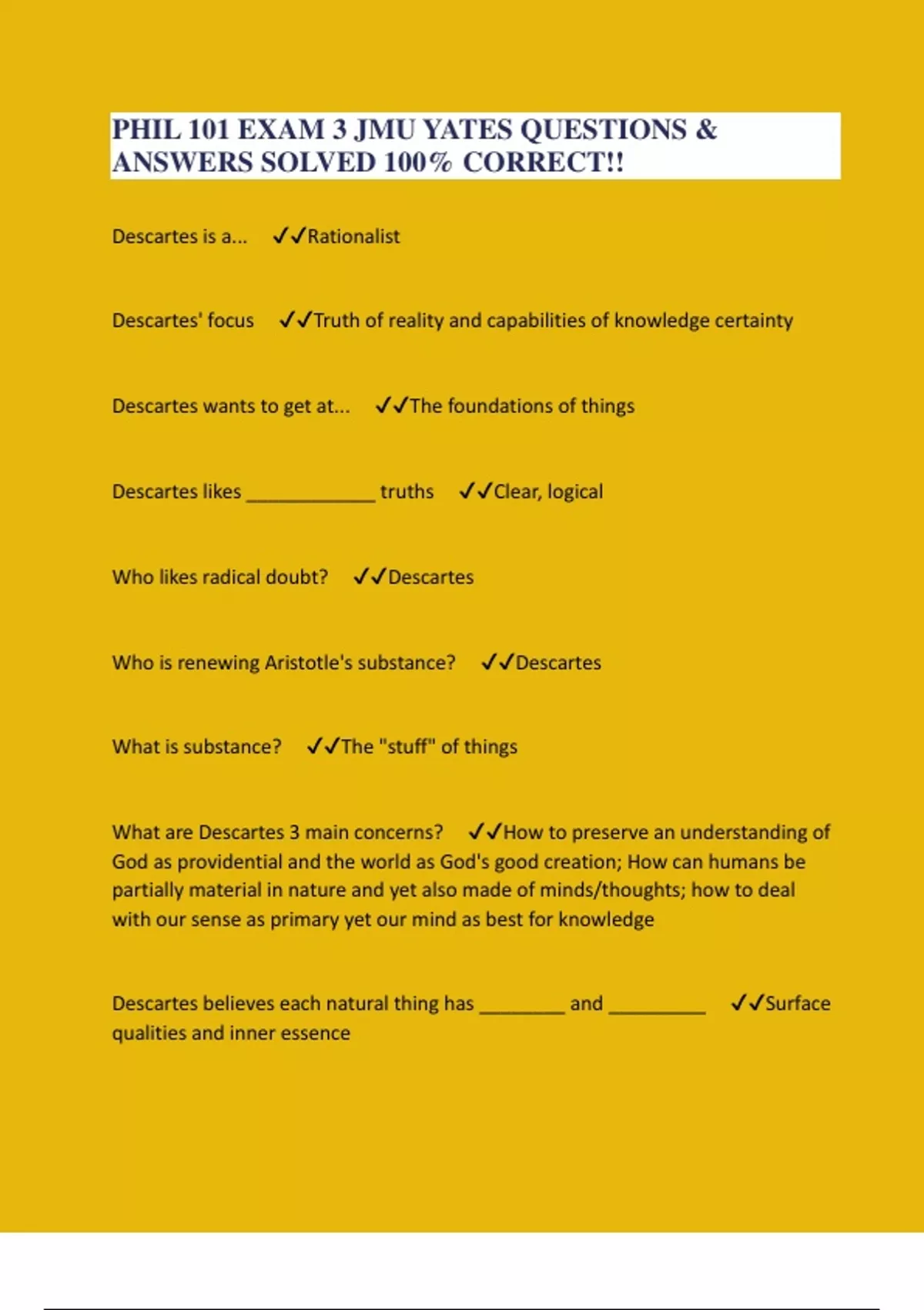 PHIL 101 EXAM 3 JMU YATES QUESTIONS & ANSWERS SOLVED 100% CORRECT!!