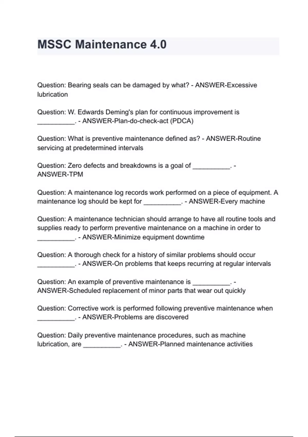 MSSC Maintenance 4.0 with complete solution / Latest updated