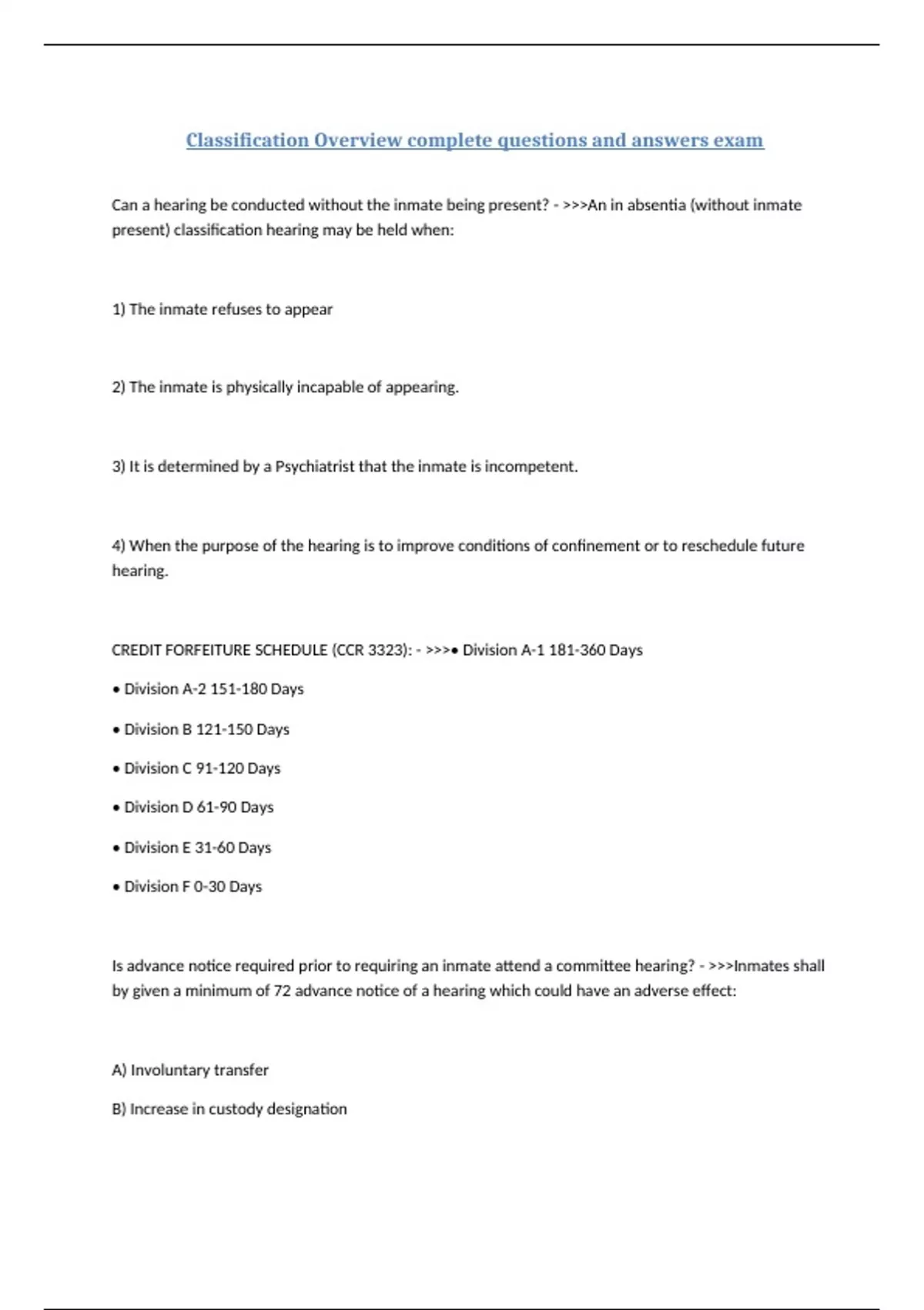 Classification Overview complete questions and answers exam