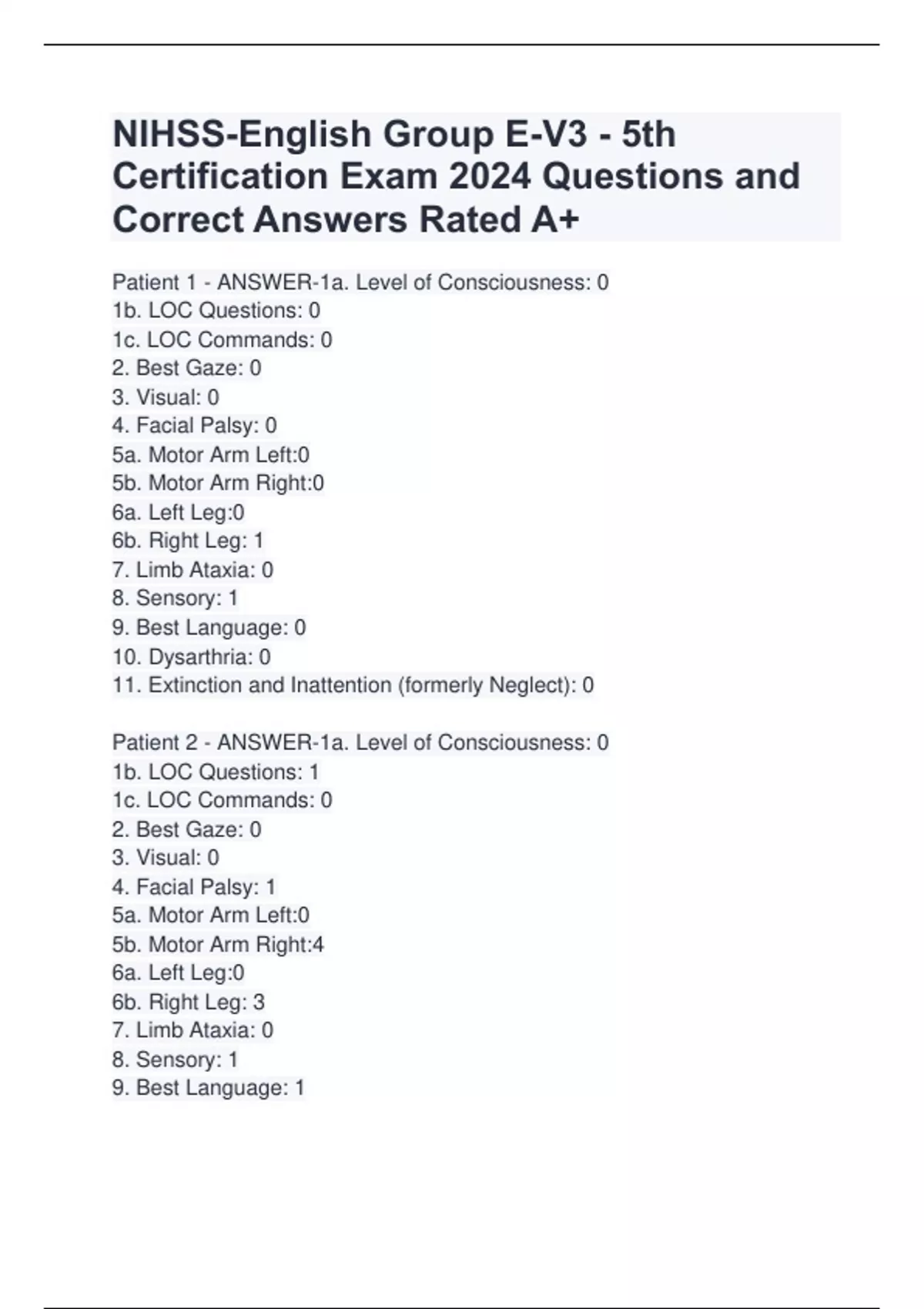 NIHSS Exams 2024 Update Questions and Correct Answers Rated A+
