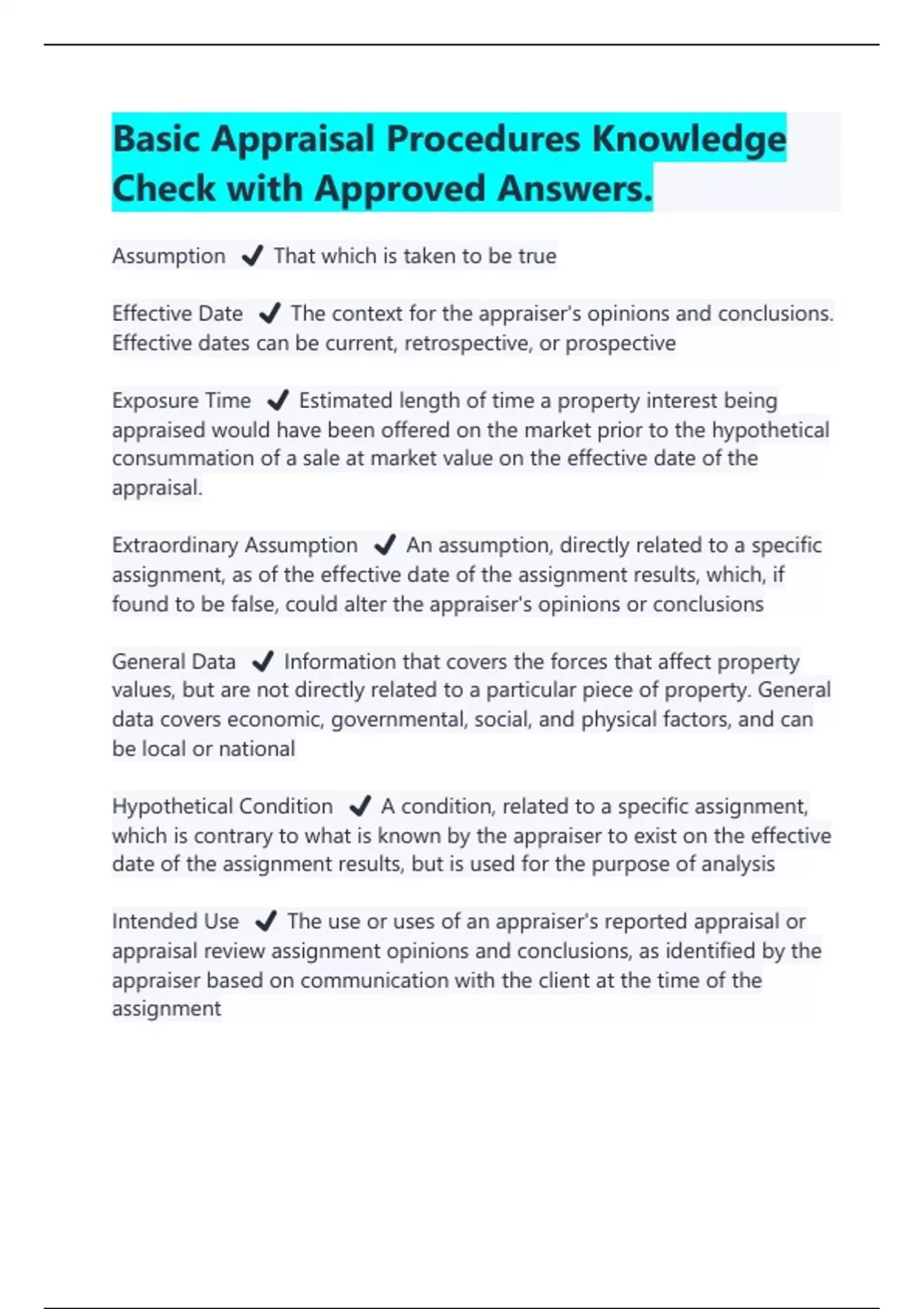 Basic Appraisal Procedures Knowledge Check with Approved Answers |Latest 2024/2025
