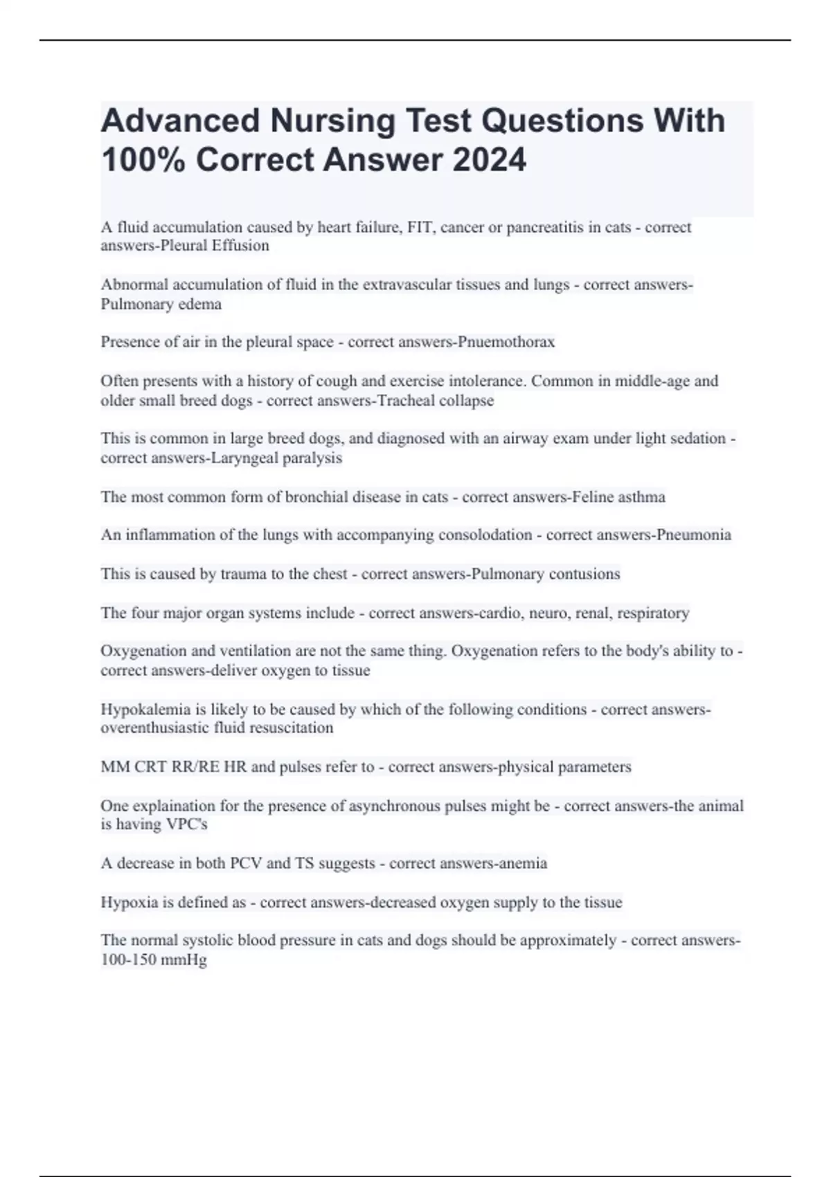 Advanced Nursing Test Questions With 100% Correct Answer 2024