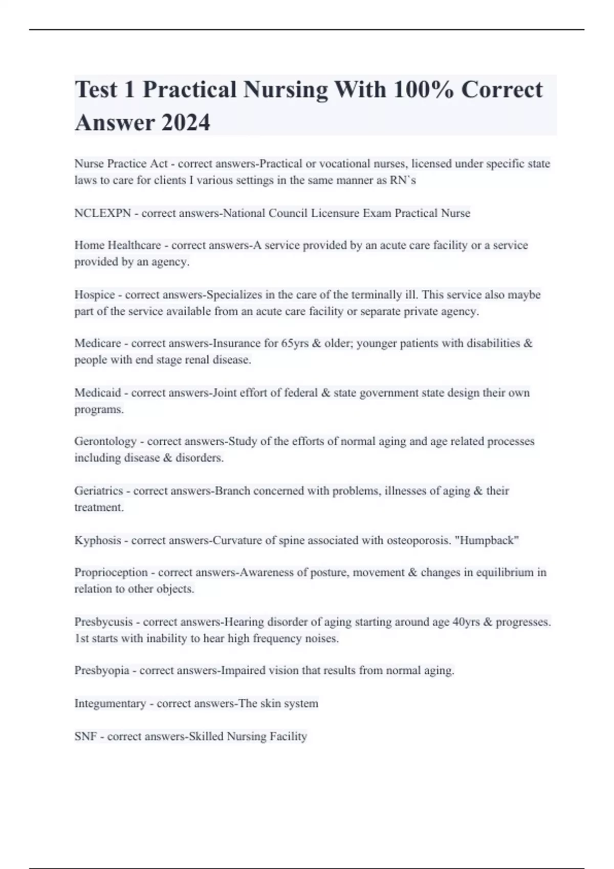 Test 1 Practical Nursing With 100% Correct Answer 2024