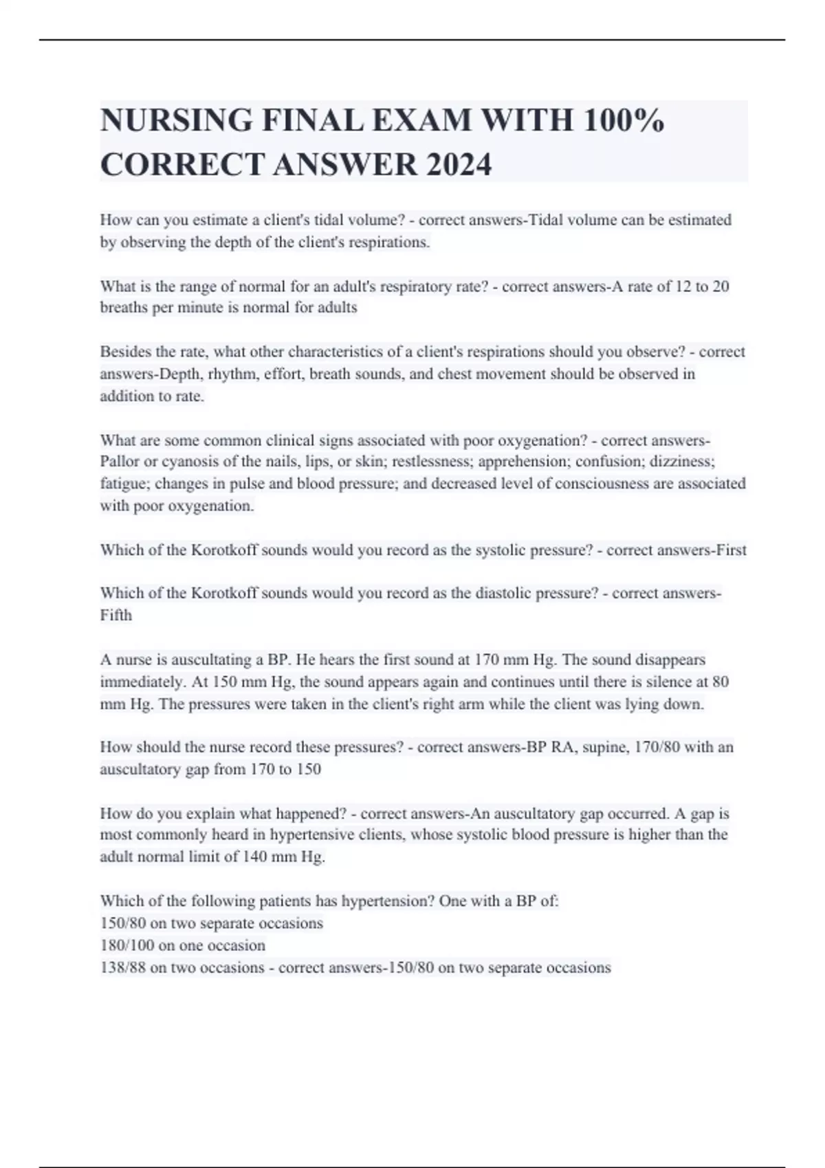 NURSING FINAL EXAM WITH 100% CORRECT ANSWER 2024