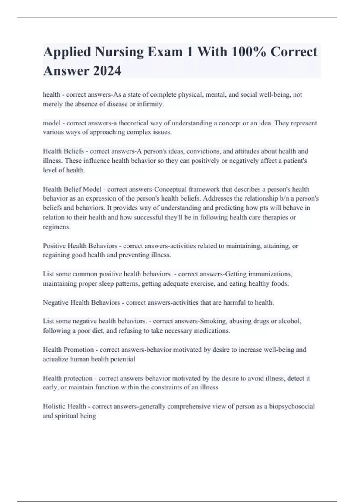 Applied Nursing Exam 1 With 100% Correct Answer 2024