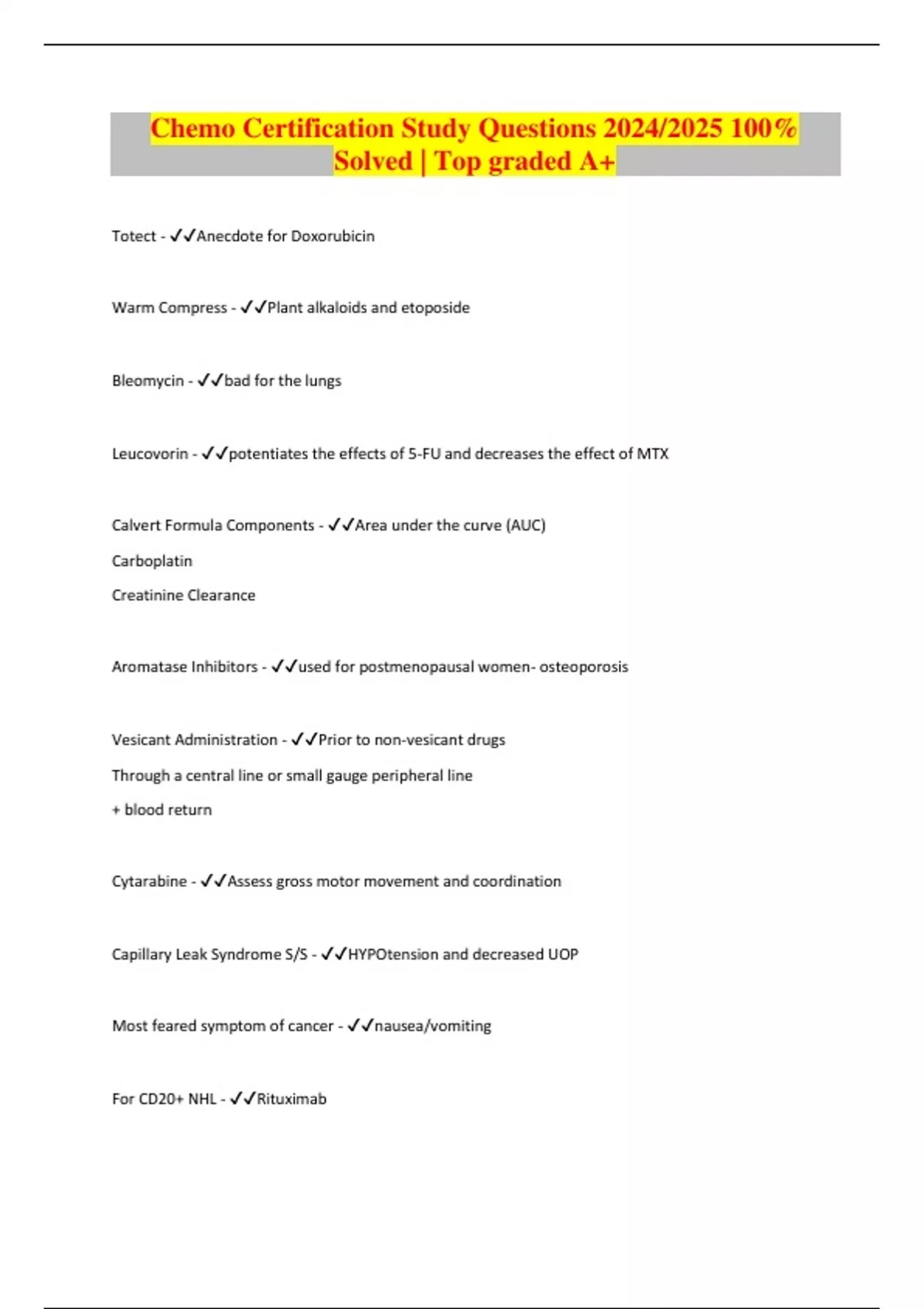 Chemo Certification Study Questions 2024/2025 100% Solved | Top graded A+