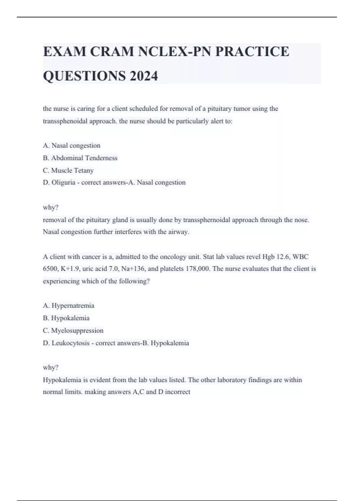 EXAM CRAM NCLEX-PN PRACTICE QUESTIONS 2024