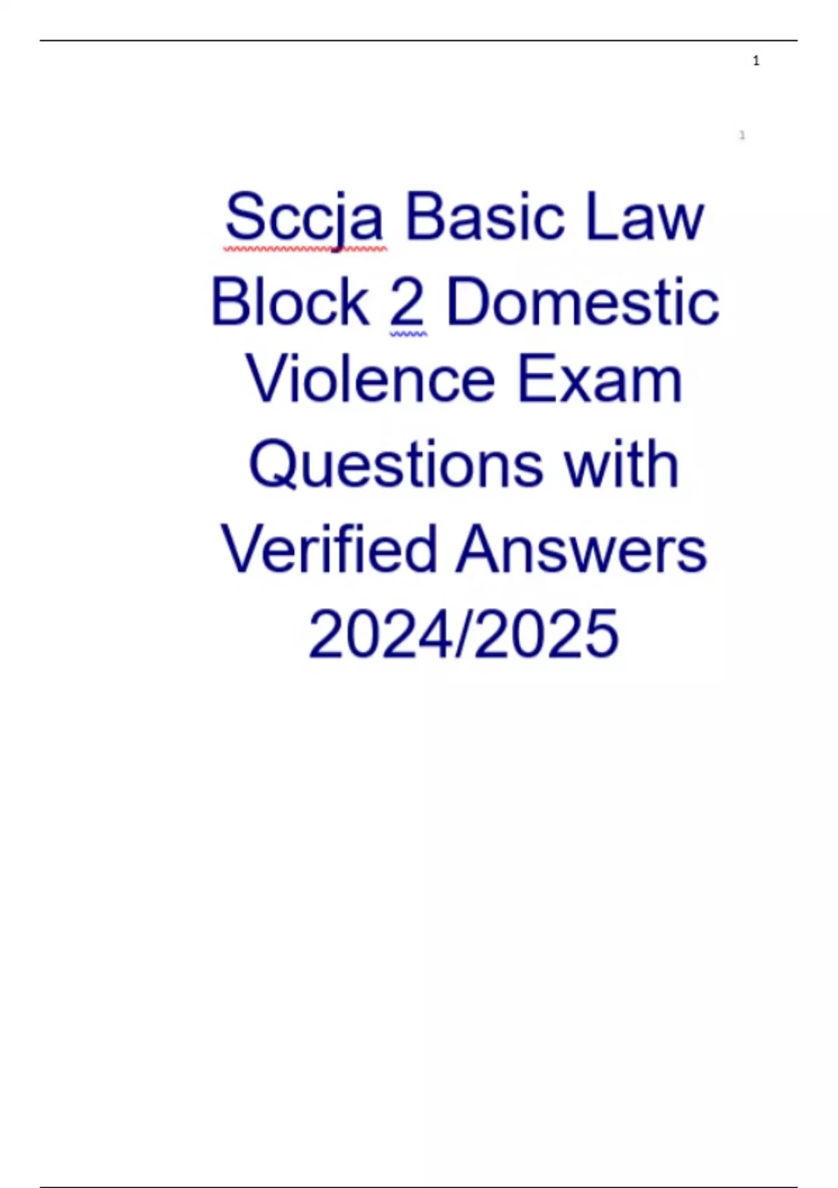 Sccja Basic Law Block 2 Domestic Violence Exam Questions with Verified Answers 2024/2025