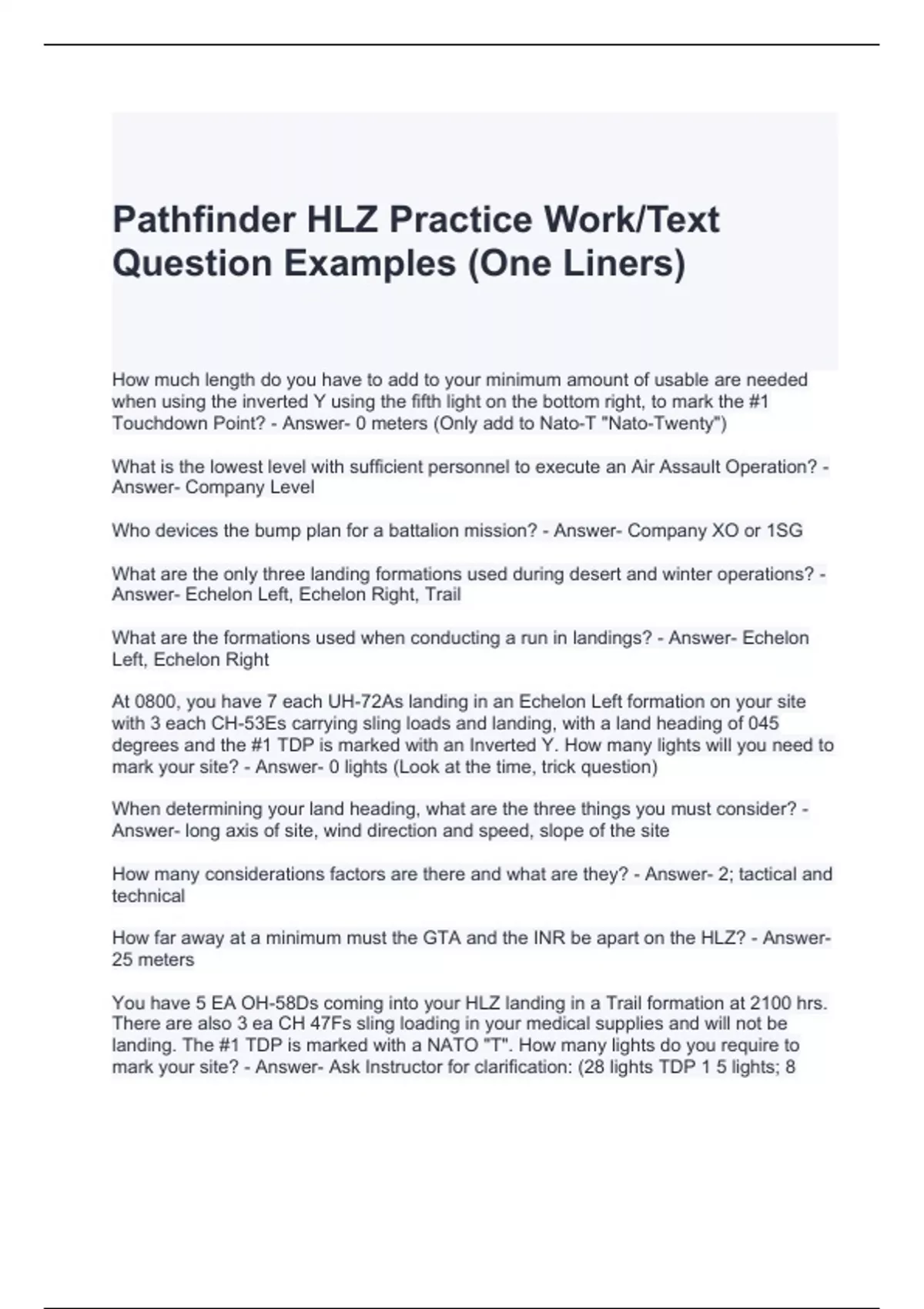 Pathfinder HLZ Practice Work-Text Question Examples (One Liners) with correct Answers