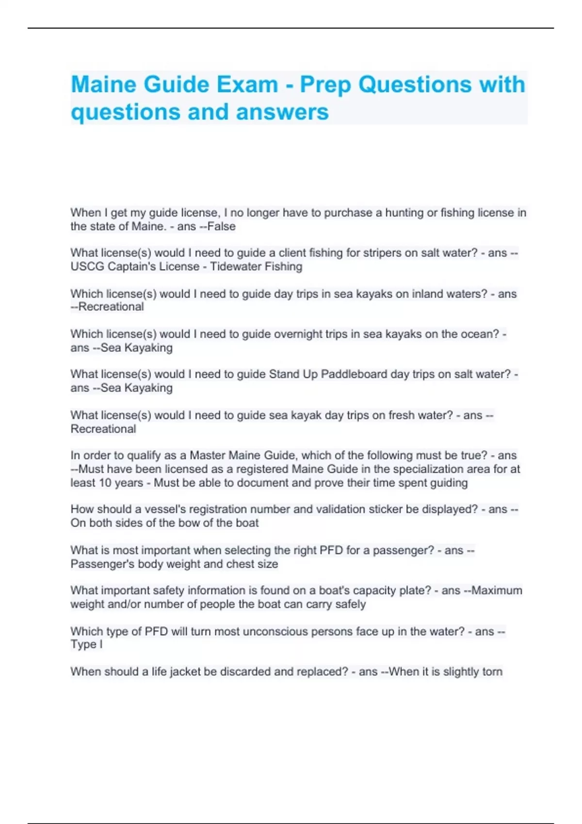 In order to qualify as a Master Maine Guide, which of the following must be true? - ans