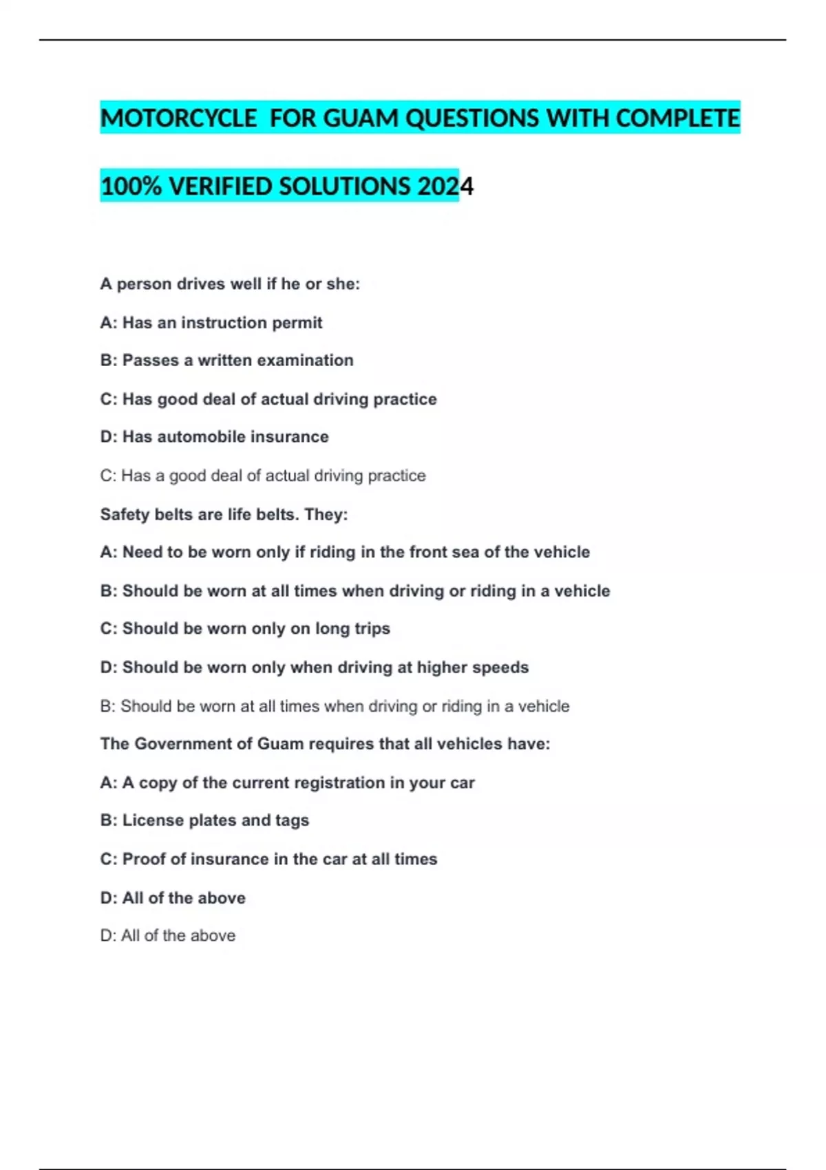 100% VERIFIED SOLUTIONS 2024