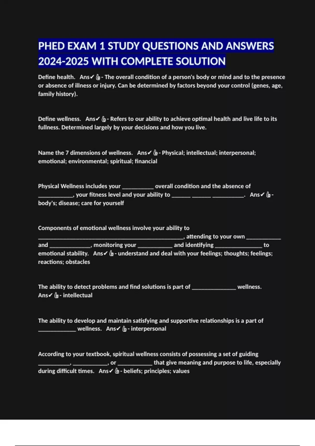 PHED EXAM 1 STUDY QUESTIONS AND ANSWERS WITH COMPLETE SOLUTION