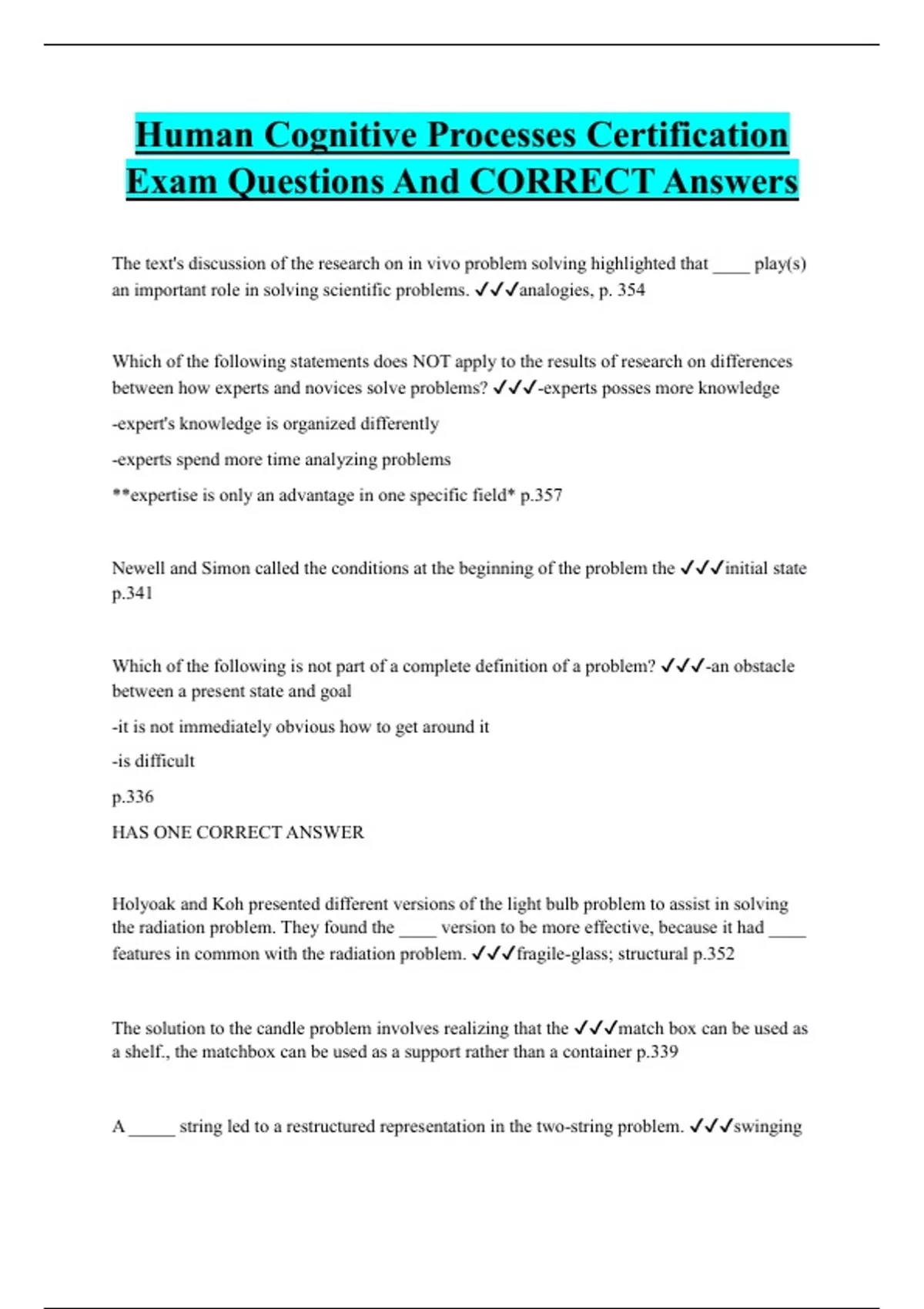 Human Cognitive Processes Certification Exam Questions And CORRECT Answers