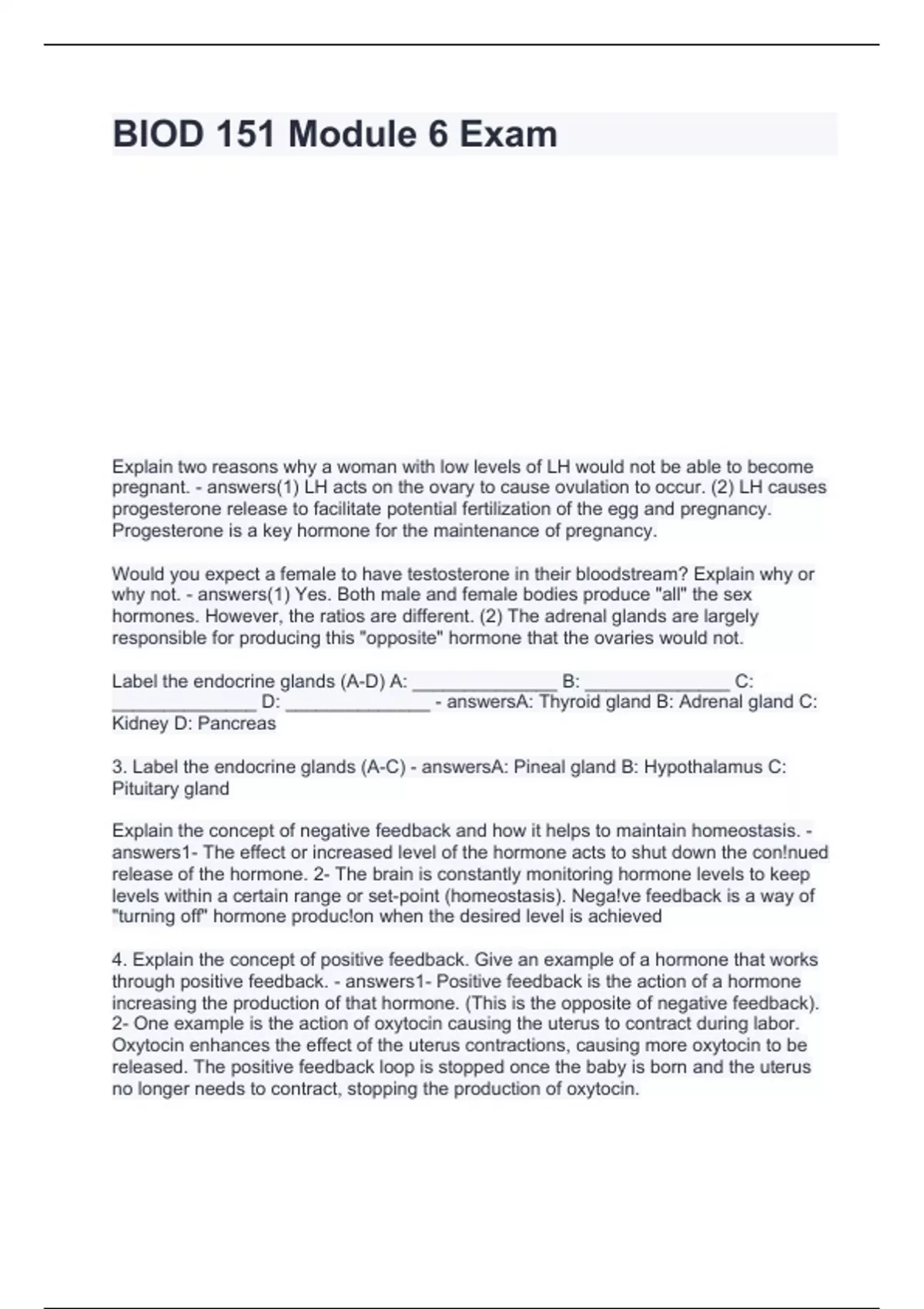BIOD 151 Module 6 Exam questions with right answers
