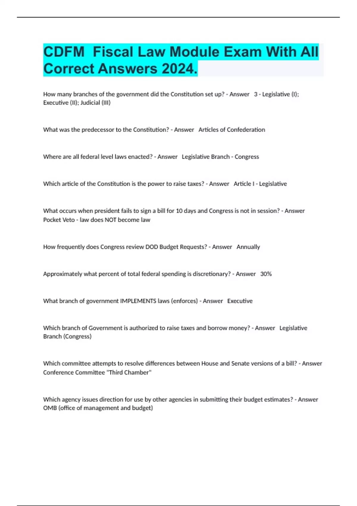 CDFM Fiscal Law Module Exam With All Correct Answers 2024.
