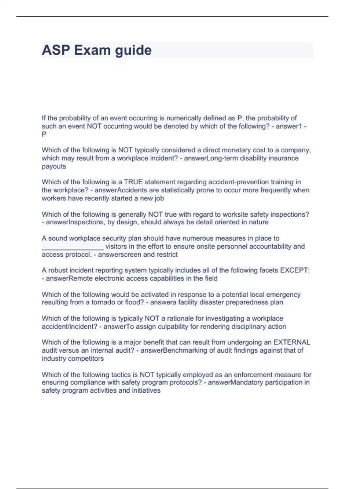 Exam of 15 pages for the course ASP at ASP (ASP Exam guide)