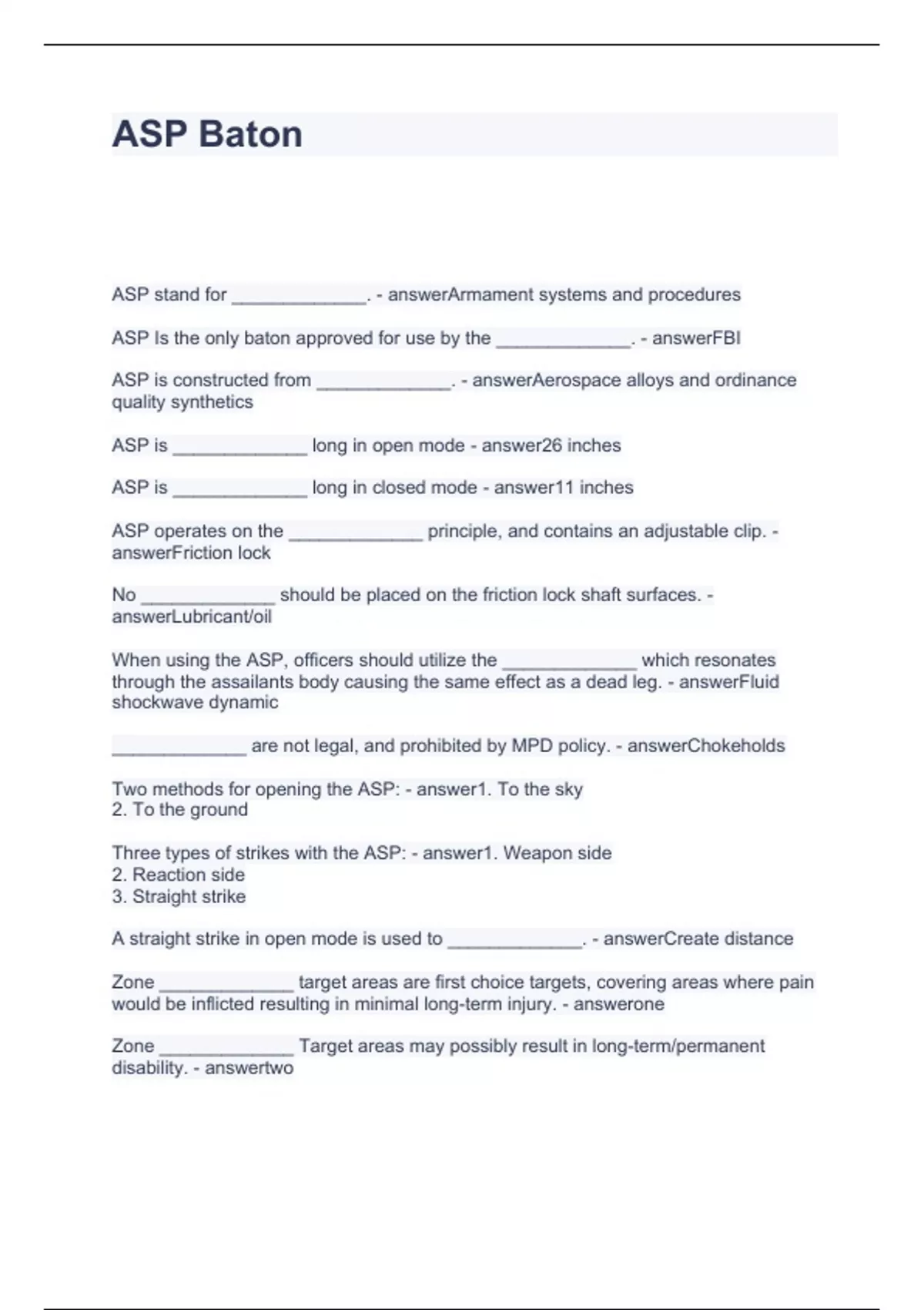 ASP Baton Questions and Answers 2024