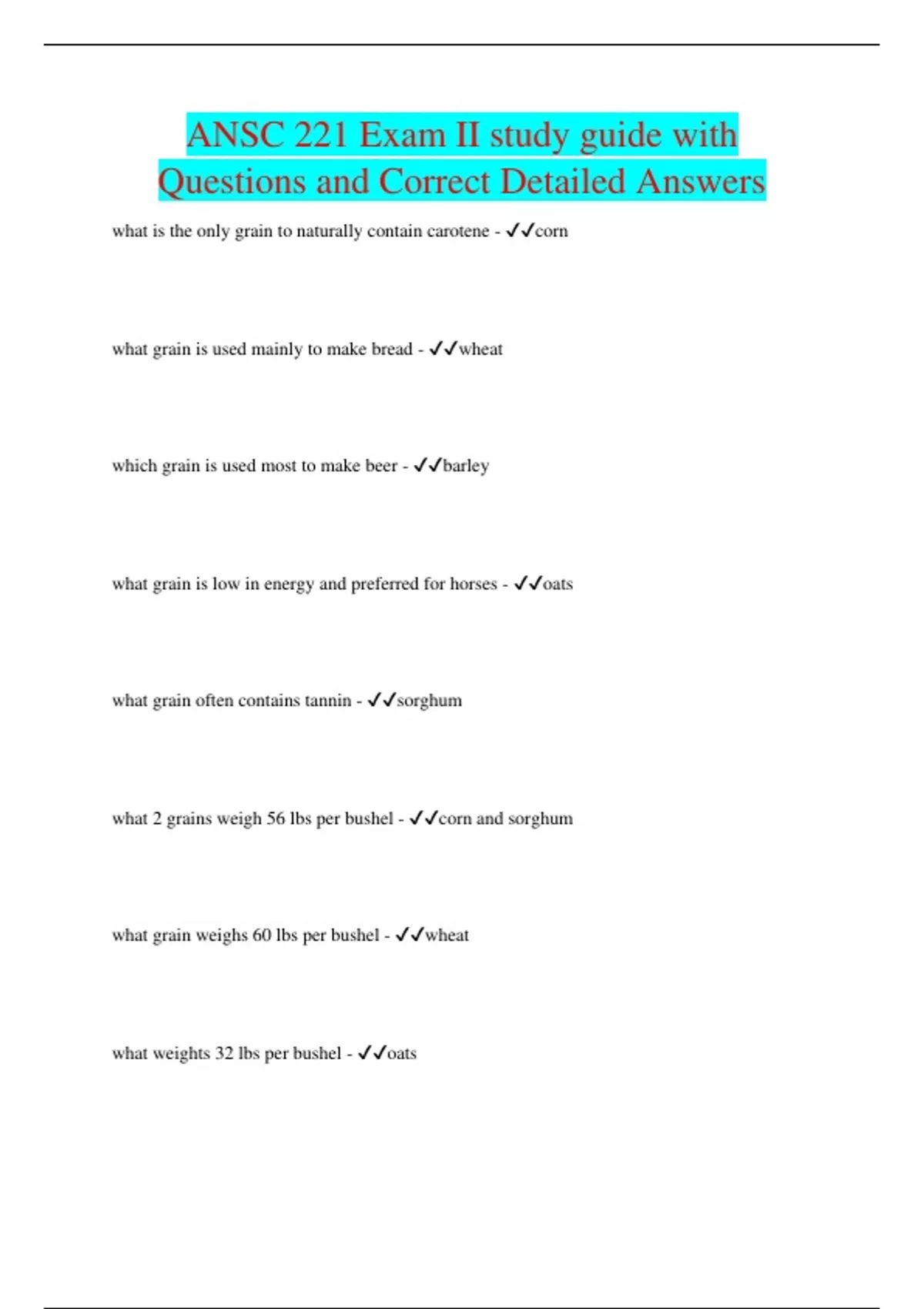 ANSC 221 Exam II study guide with Questions and Correct Detailed Answers