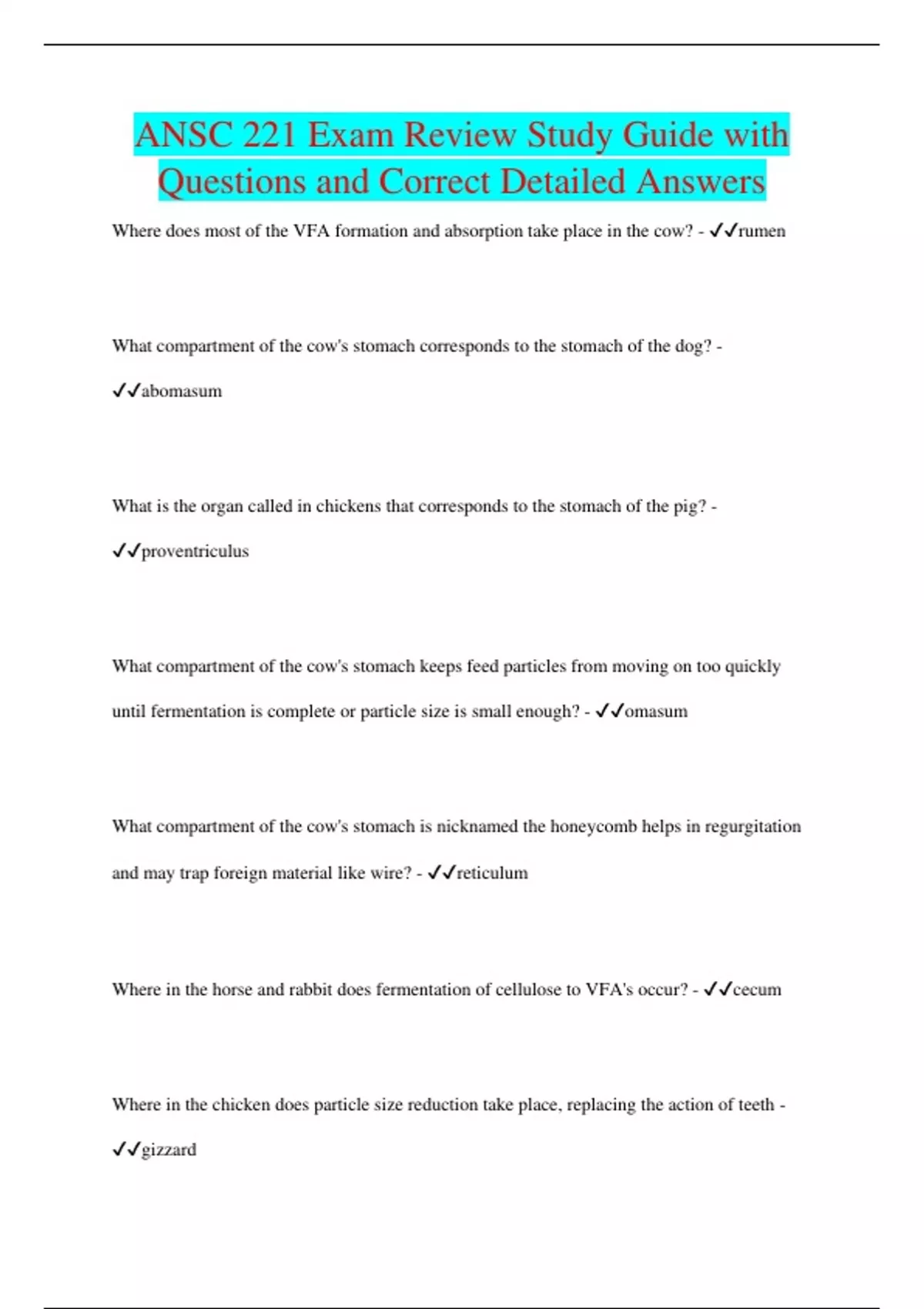 ANSC 221 Exam Review Study Guide with Questions and Correct Detailed Answers