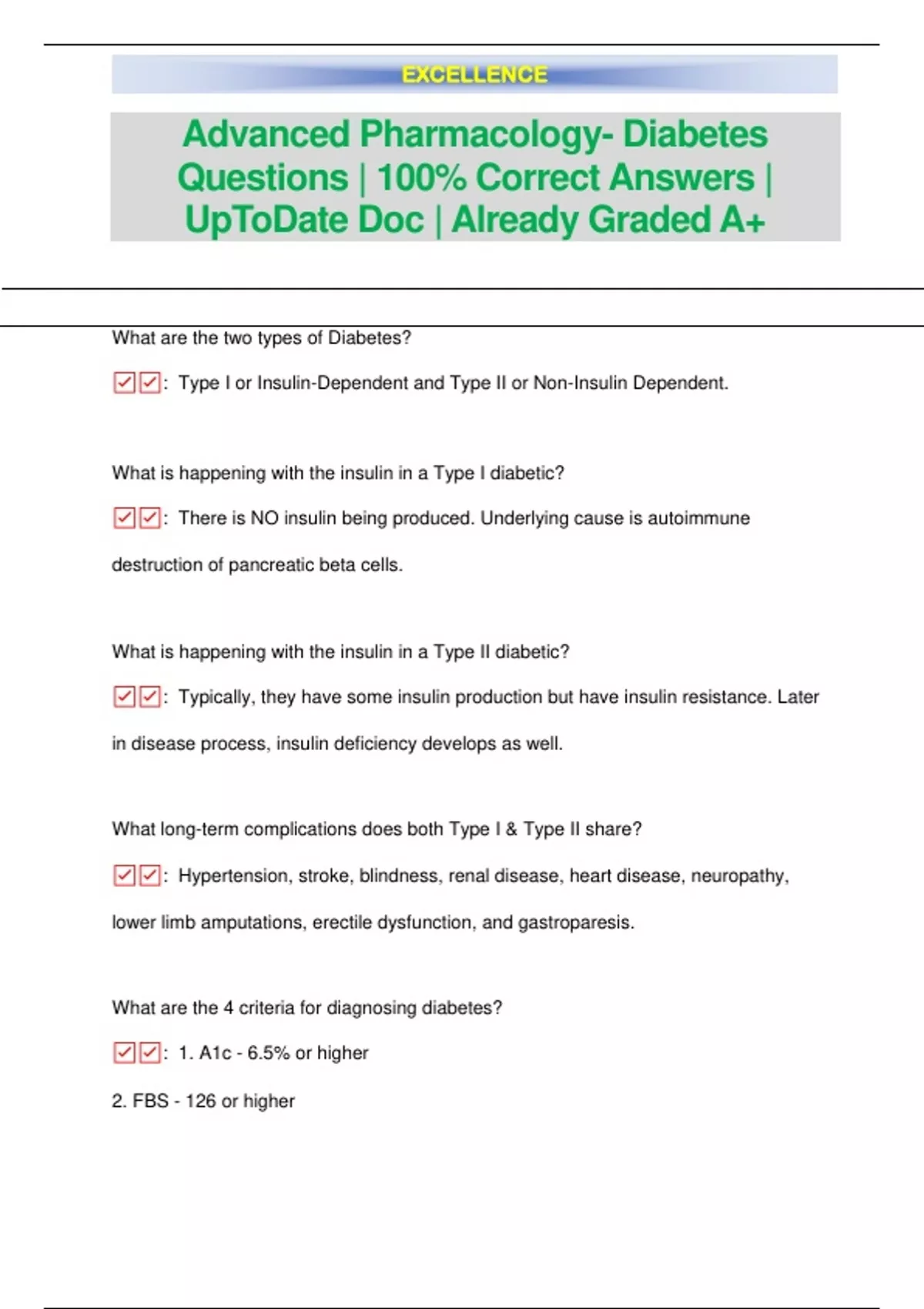 Advanced Pharmacology- Diabetes Questions | 100% Correct Answers | UpToDate Doc | Already Graded A+