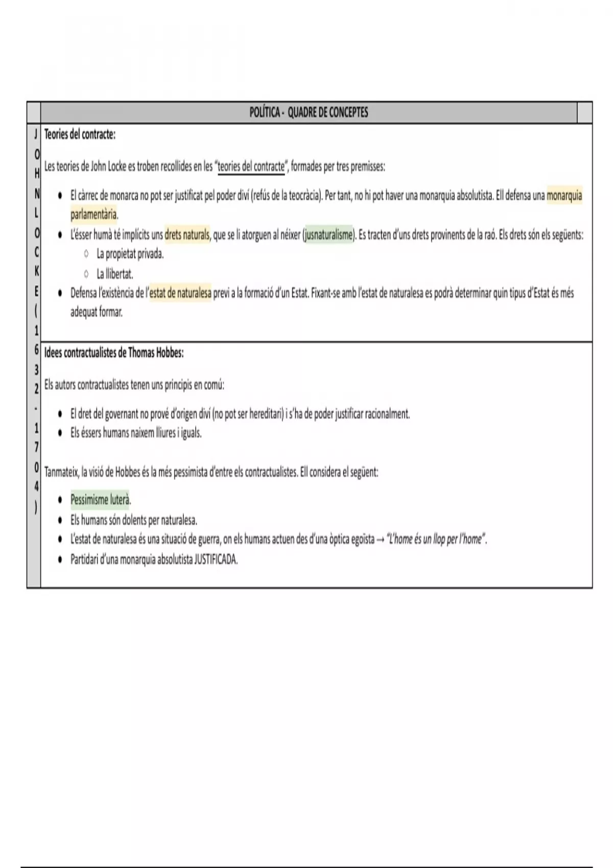 E ● Defensa l’existència de l’estat de naturalesa previ a la formació d’un Estat. Fixant-se amb l’estat de naturalesa es podrà determinar quin tipus d’Estat és més