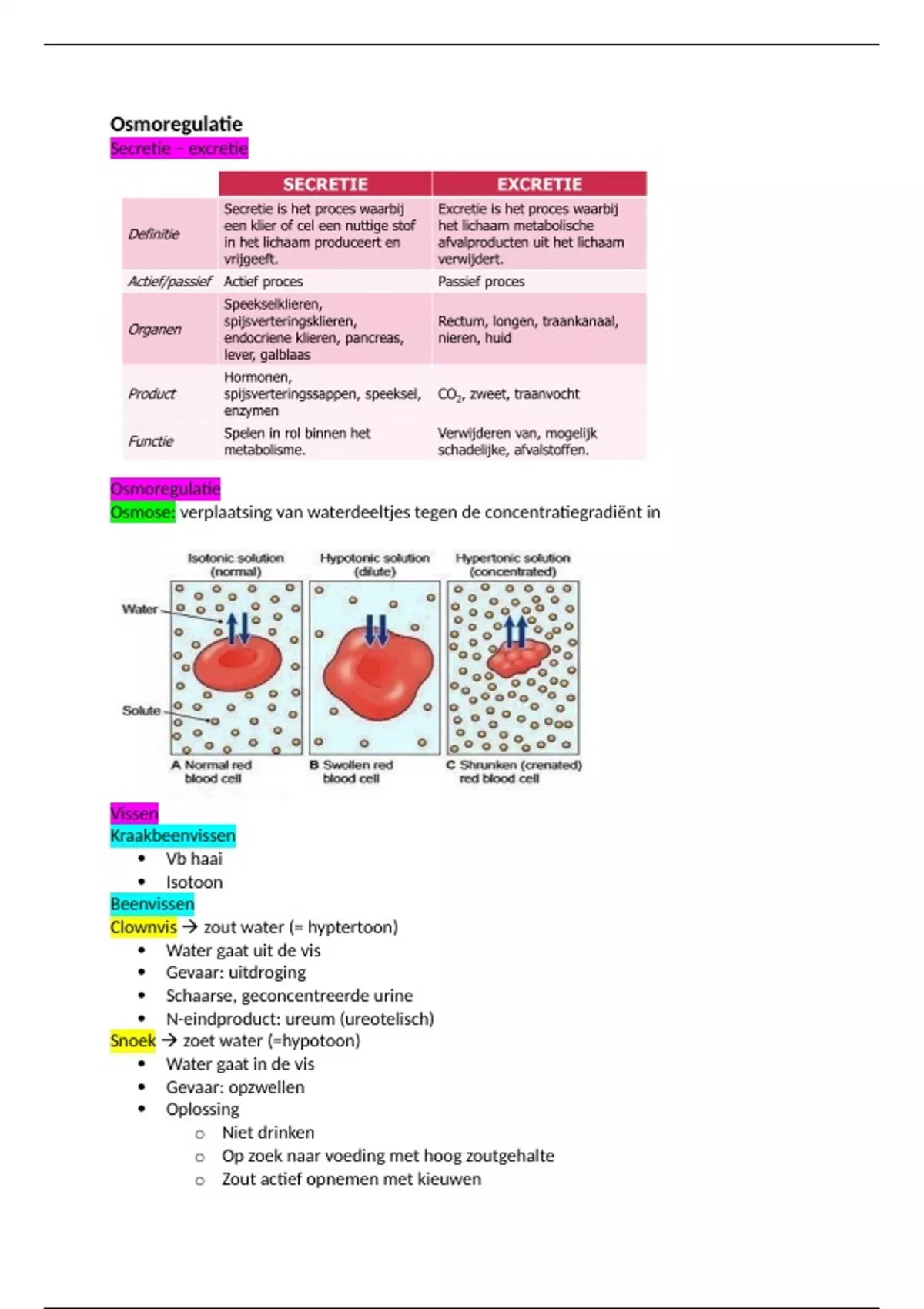 Samenvatting over de osmoregulatie bij het vak biologie.