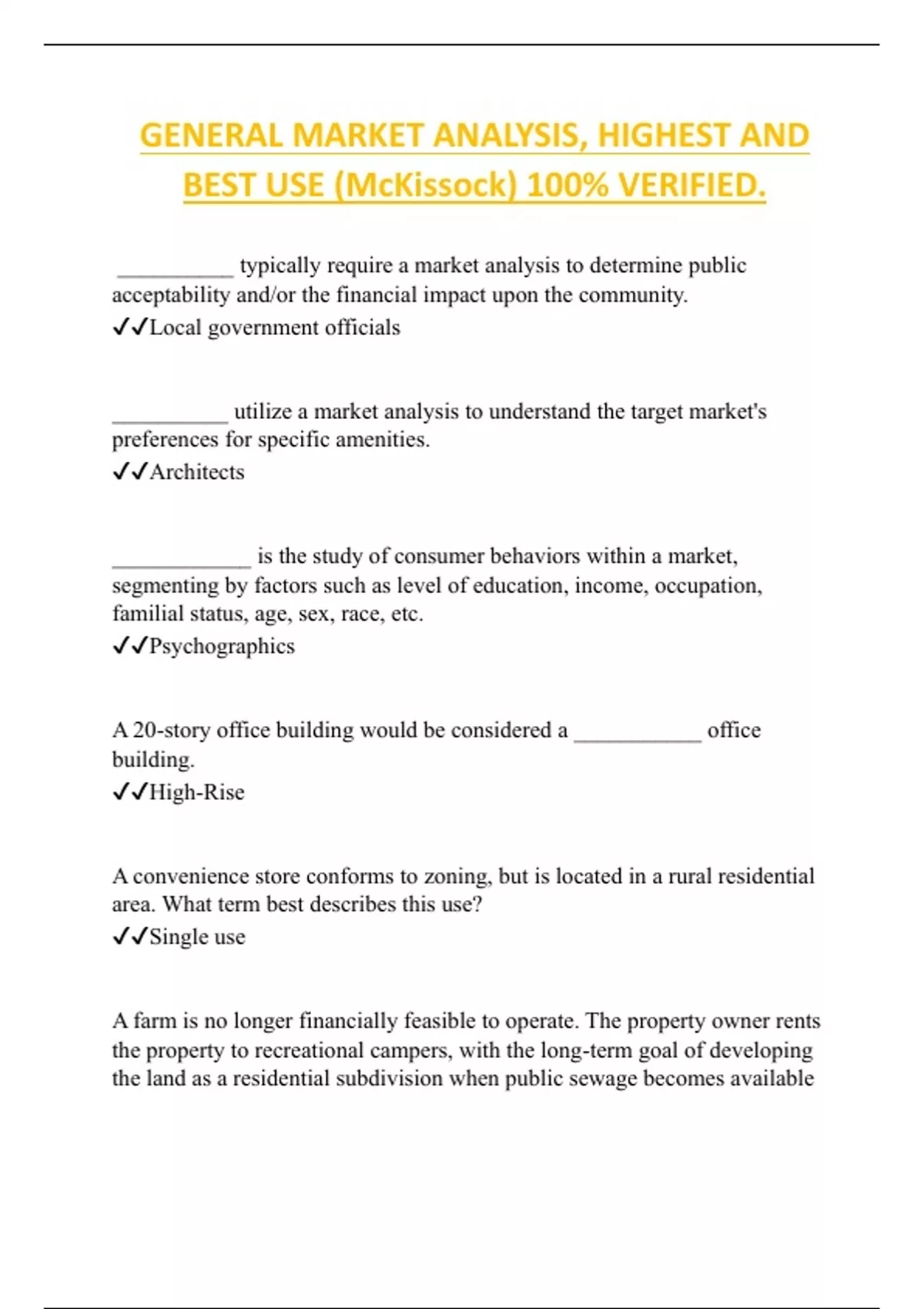 GENERAL MARKET ANALYSIS, HIGHEST AND BEST USE (McKissock) 100% VERIFIED.