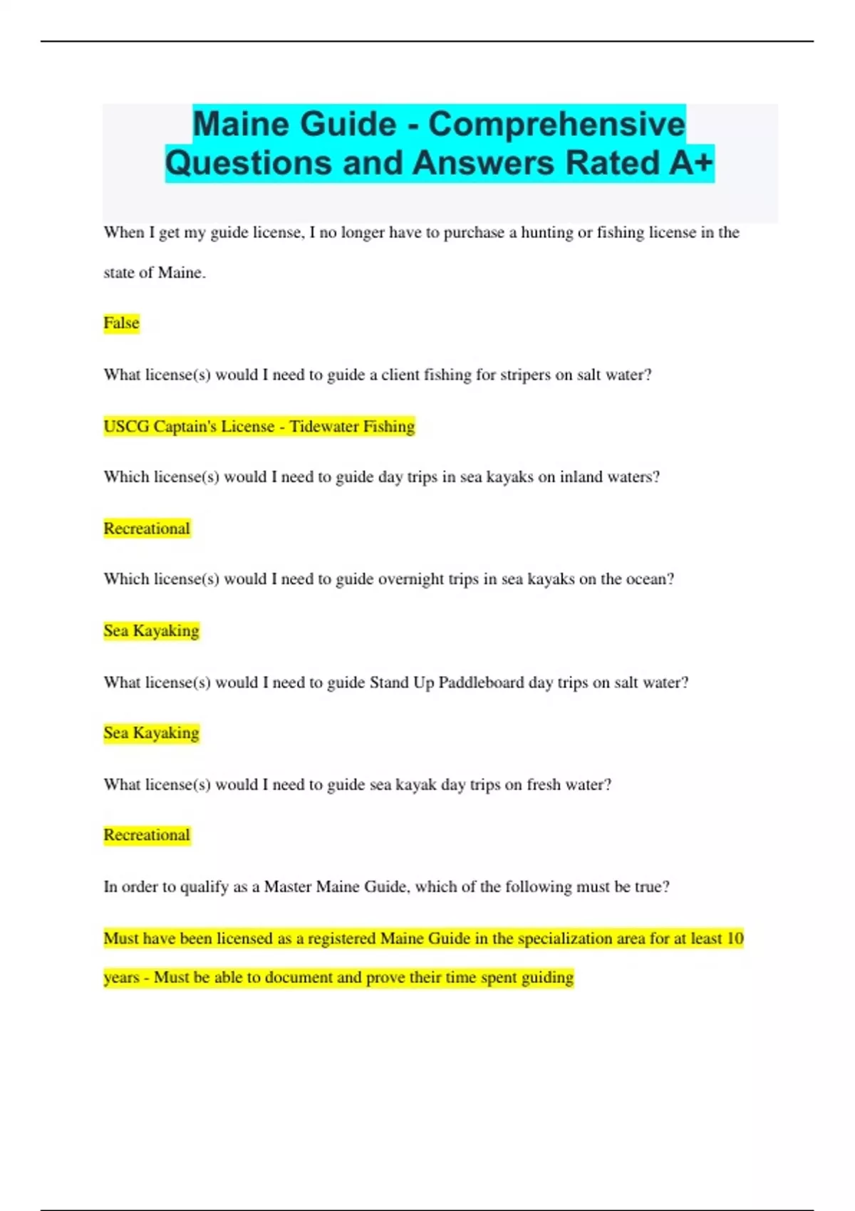 Maine Guide - Comprehensive Questions and Answers Rated A+
