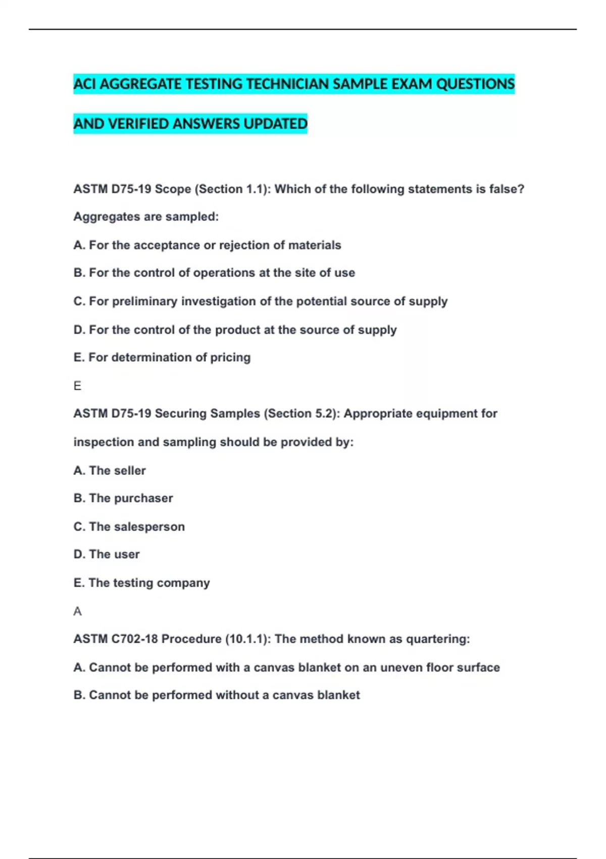 ASTM D75-19 Scope (Section 1.1): Which of the following statements is false?