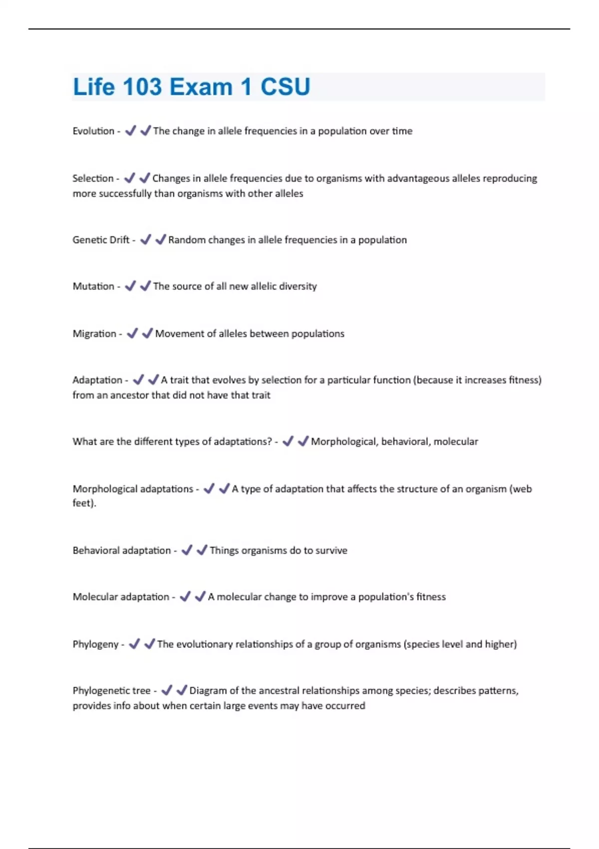 Life 103 Exam 1 CSU Questions And Answers With Verified Study Solutions