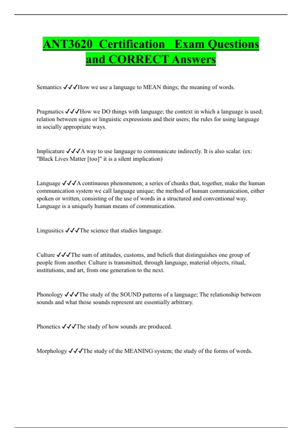 ANT3620 Certification Exam Questions and CORRECT Answers