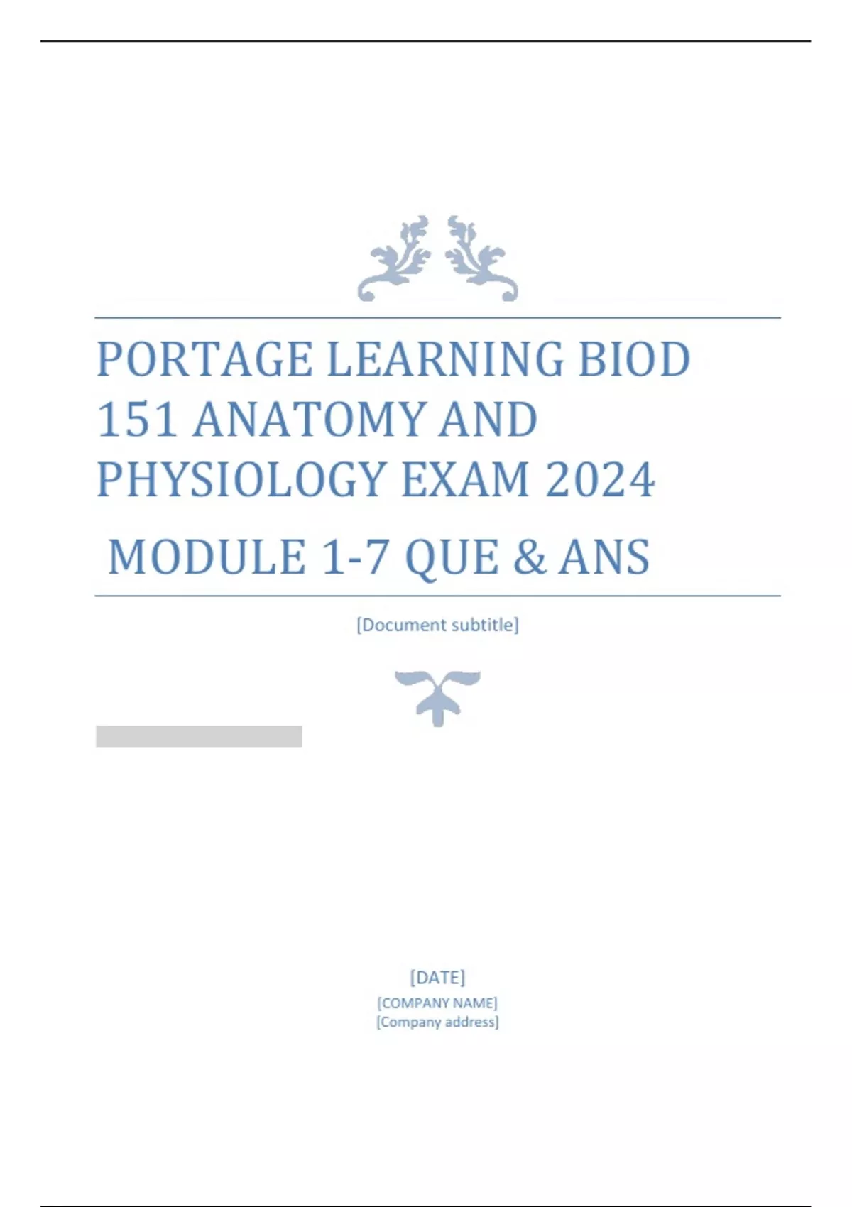 Portage Learning BIOD 151 Anatomy and Physiology Exam (MODULE 1 - MODULE 7) TEST BANK Portage Learning BIOD 151 Anatomy and Physiology Exam (MODULE 1 - MODULE 7) TEST BANK Portage Learning BIOD 151 Anatomy and Physiology Exam (MODULE 1 - MODULE 7) TEST BANK
