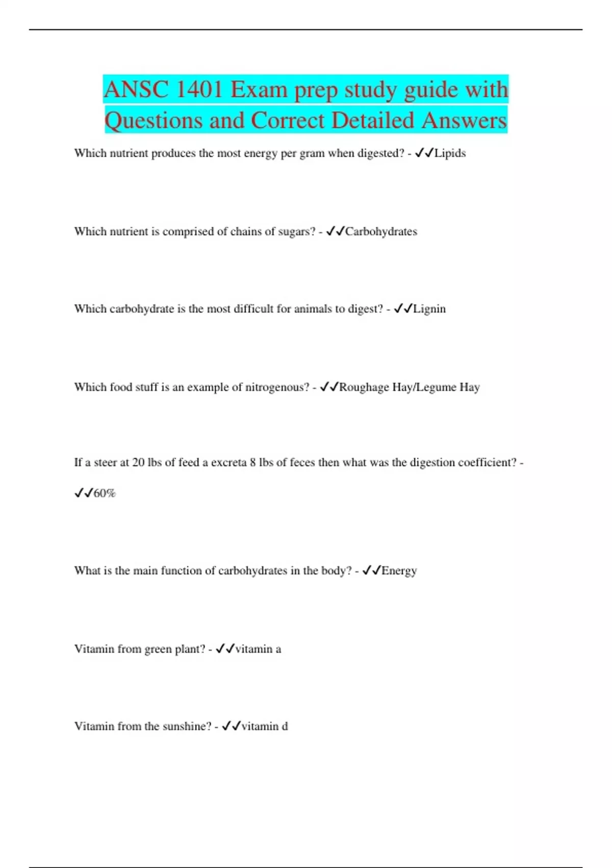 ANSC 1401 Exam prep study guide with Questions and Correct Detailed Answers
