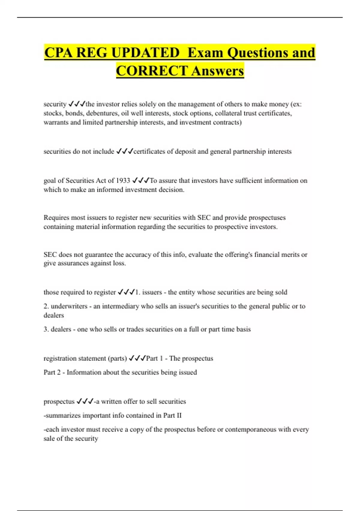 CPA REG UPDATED Exam Questions and CORRECT Answers